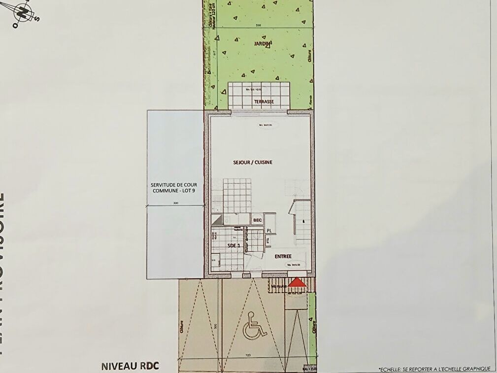 Au rez-de-chaussée une entrée desservant un espace de vie de 30m² , une salle d'eau avec WC.