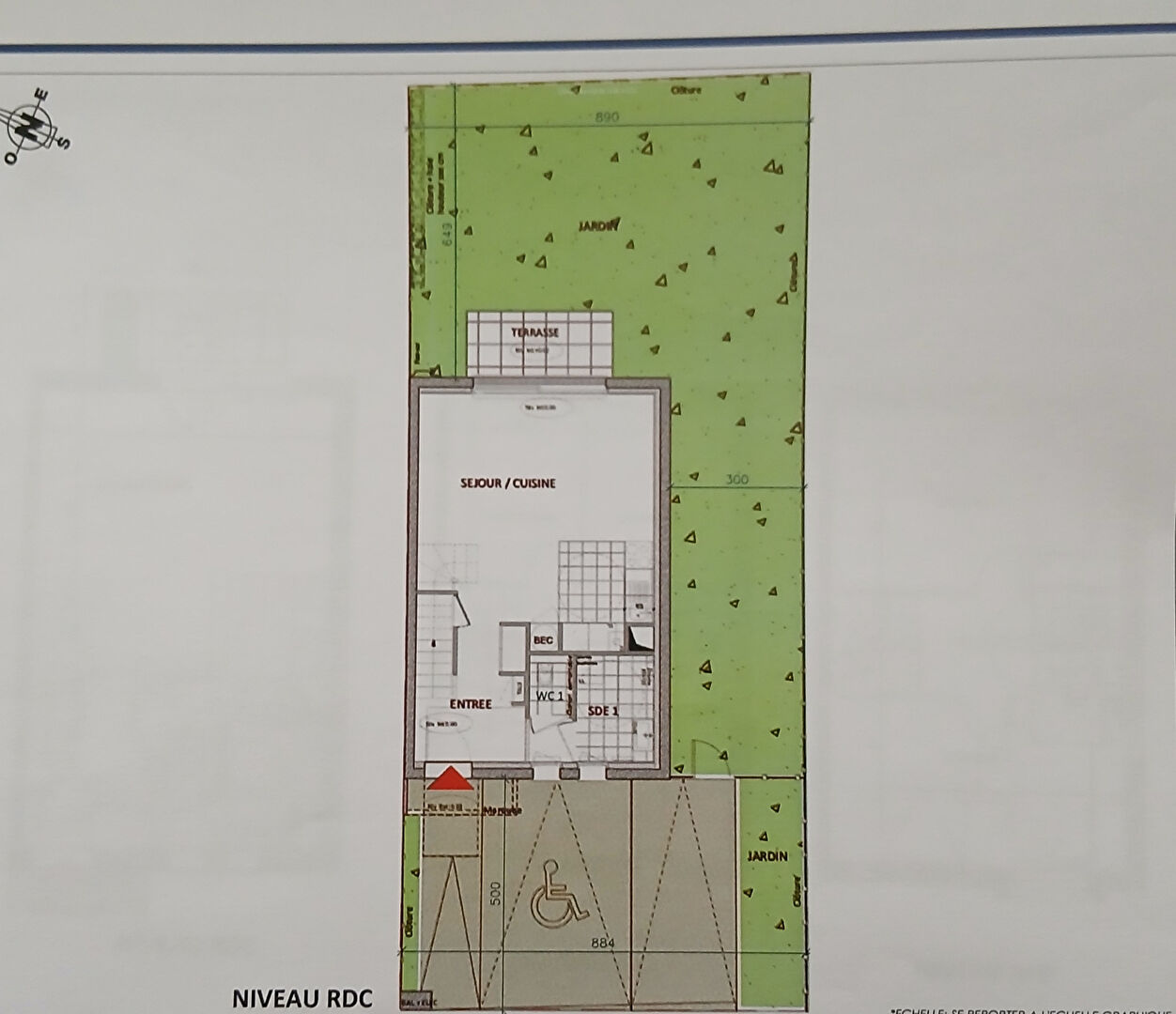 Au rez-de-chaussée une entrée desservant un espace de vie de 30m² , une salle d'eau avec WC.