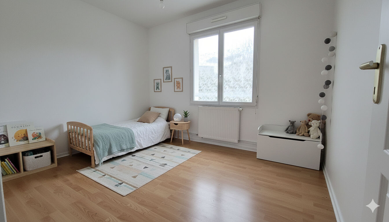 Le séjour, véritable coeur vibrant de la maison, est inondé de lumière grâce à son exposition plein SUD. C'est l'espace idéal pour voir grandir votre famille. La cuisine indépendante, fonctionnelle et conviviale, n'attend plus que vos recettes.