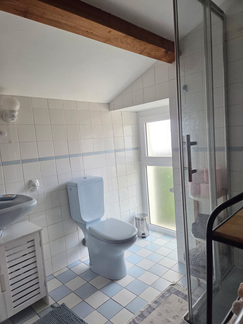 A l'étage: deux chambres et une salle d'eau avec WC.