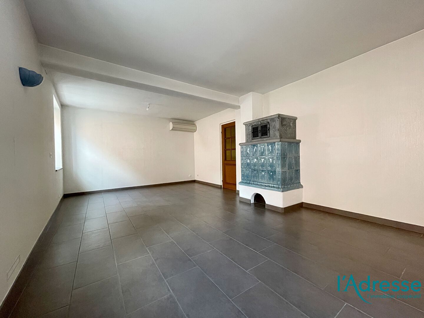 - Grande pièce de vie lumineuse avec poêle à bois.