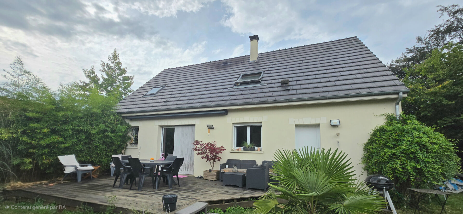 A l'extérieur, vous profiterez d'un agréable jardin clos de 589 m², d'une terrasse avec store banne.