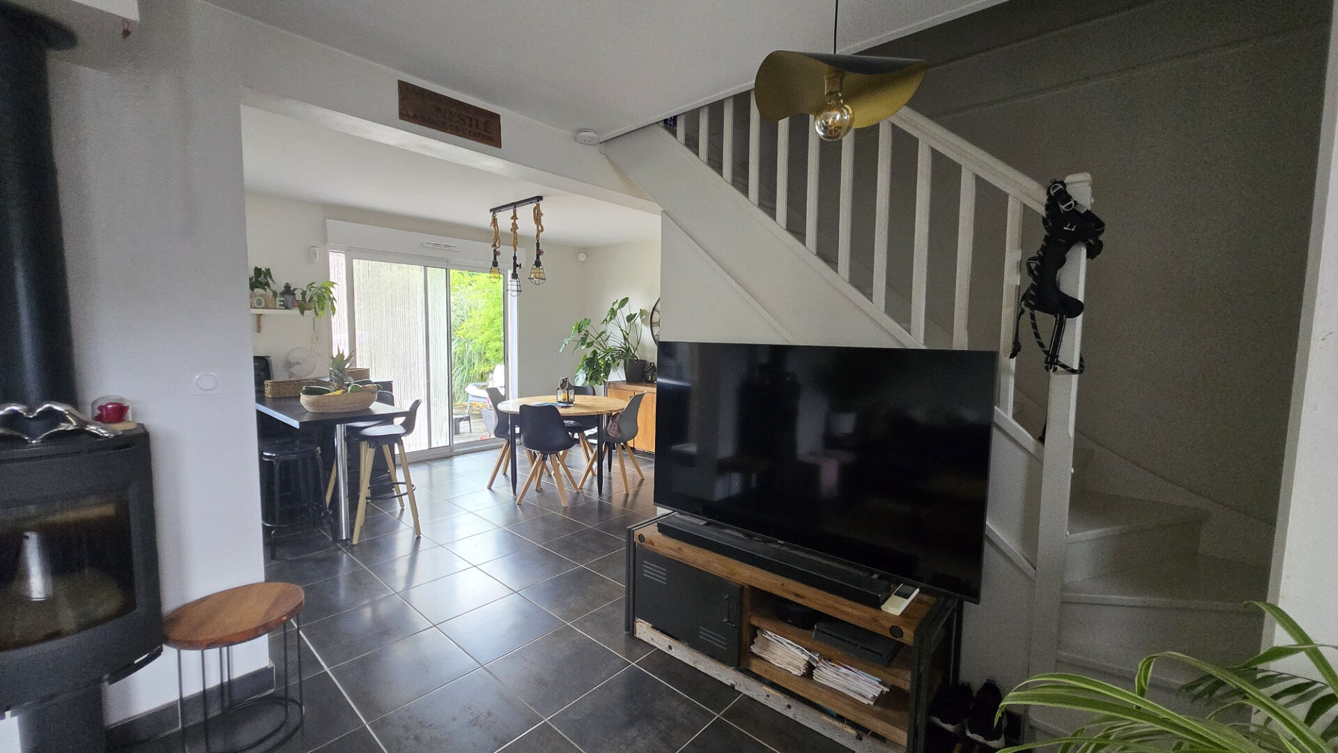 Elle se compose d'un vaste séjour traversant et lumineux équipé d'un poêle à bois, et de la climatisation, ouvert sur une cuisine moderne aménagée et équipée, un cellier.