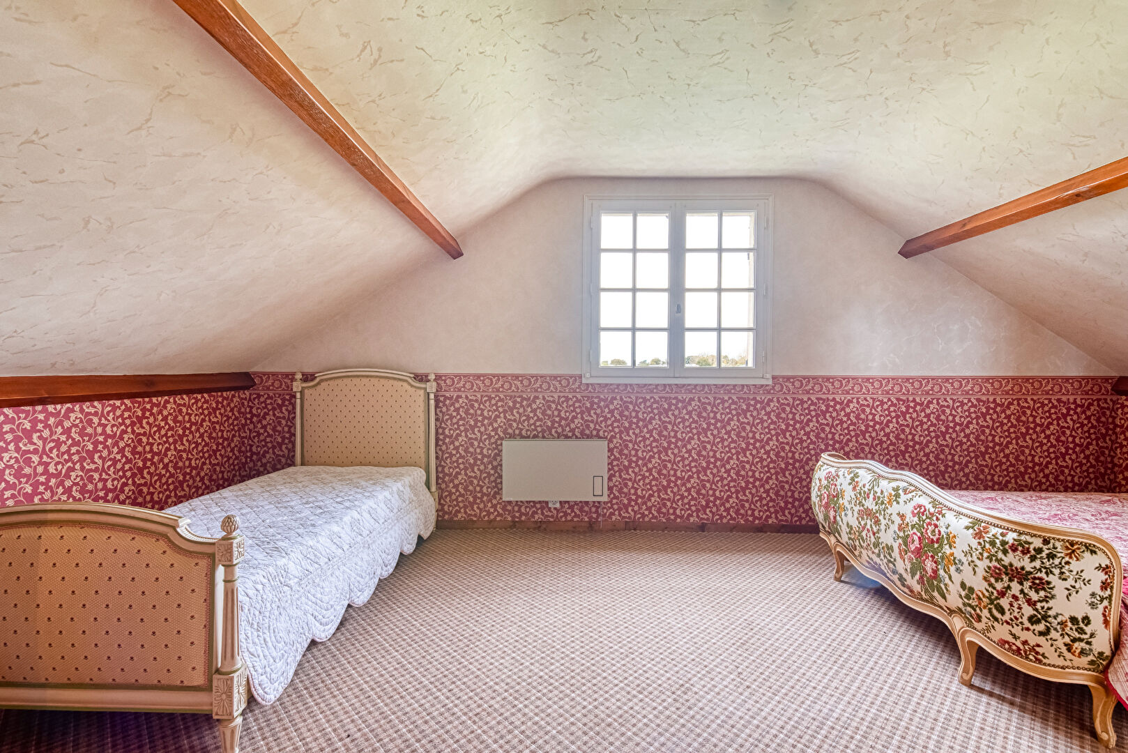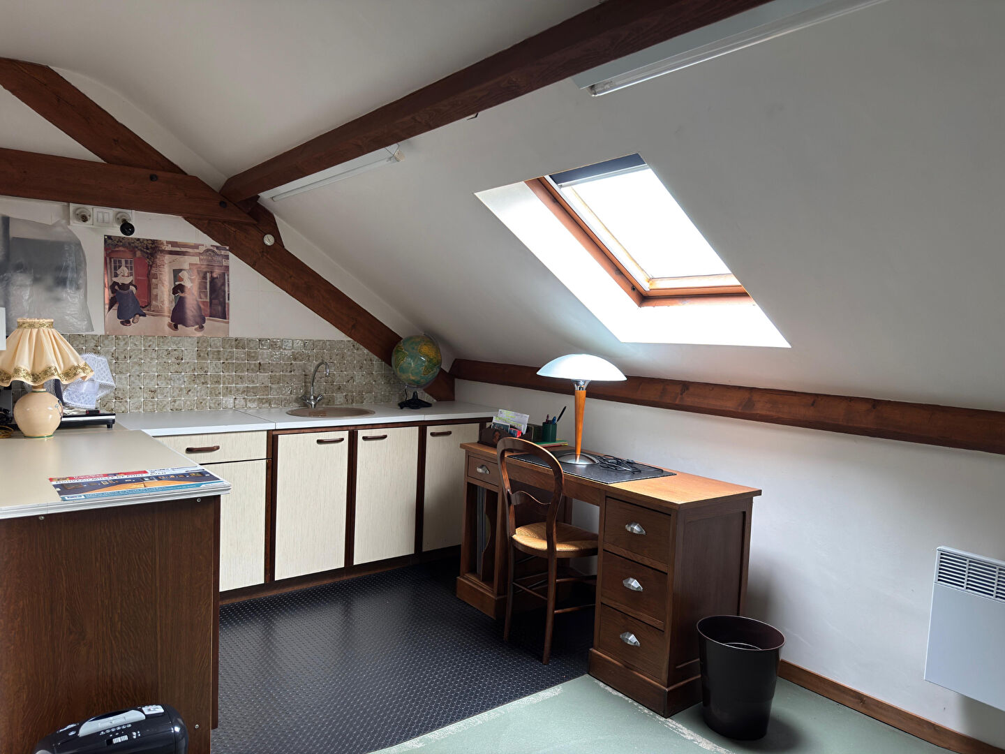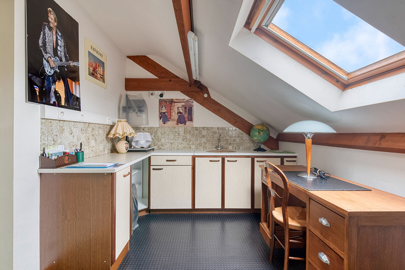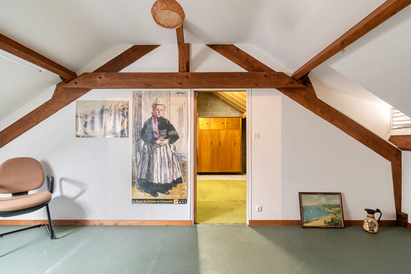 À l'étage, un palier dessert une chambre supplémentaire avec un bureau, ainsi qu'un grenier offrant de nombreuses possibilités de rangement.