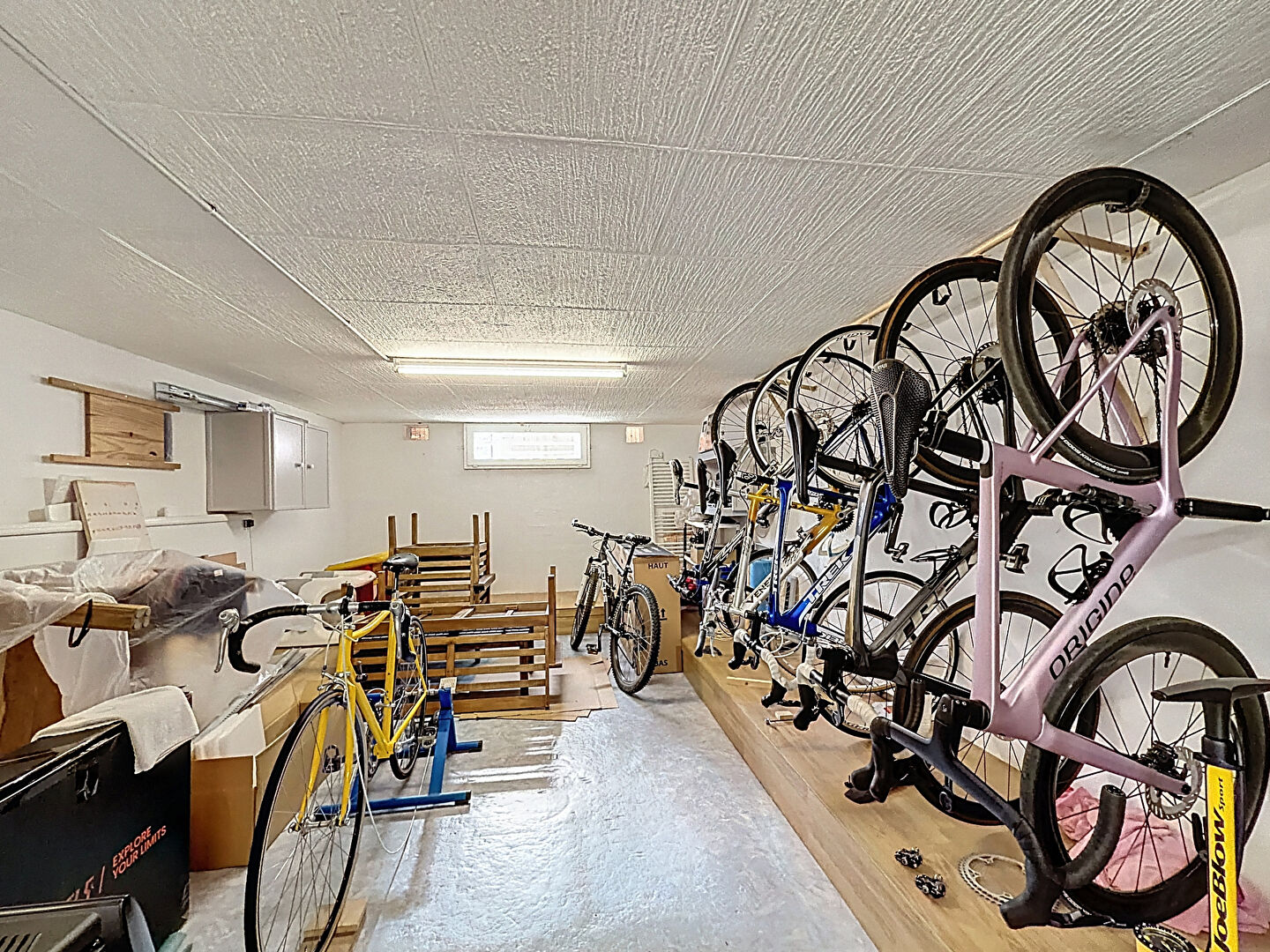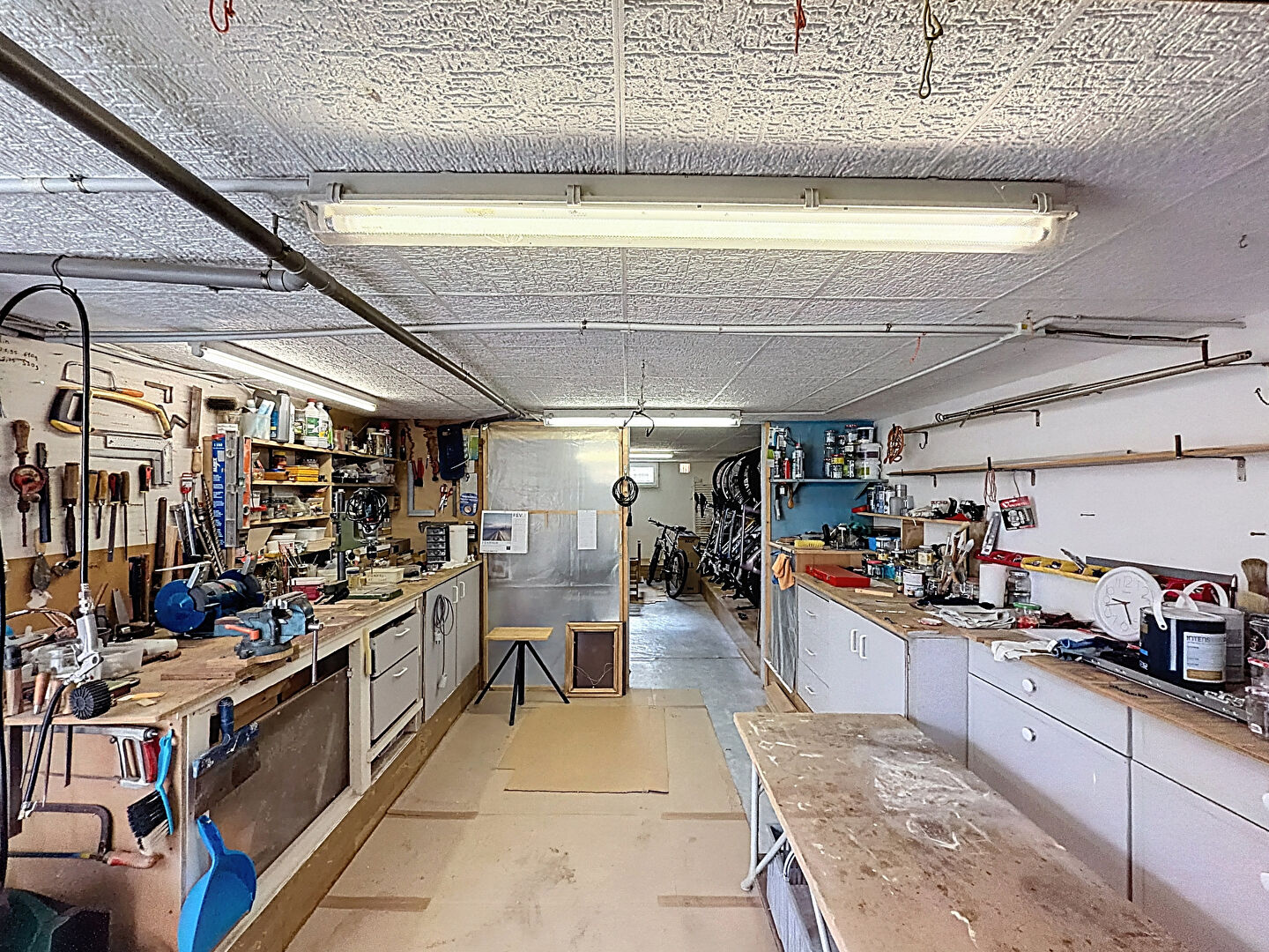 À l'extérieur, tout est impeccablement entretenu. La propriété est entièrement close et permet de stationner plusieurs véhicules. Un garage avec porte électrique facilite le quotidien. Un vide sanitaire aménagé en atelier, un local vélos ainsi que deux caves complètent l'ensemble.