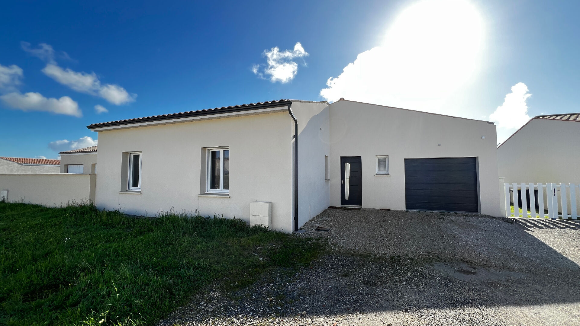 Maison de plain-pied construite en 2025, sans vis-à-vis, située dans un lotissement très bien placé dans Semussac, avec toutes les commodités, à 10mn de Royan et des plages.