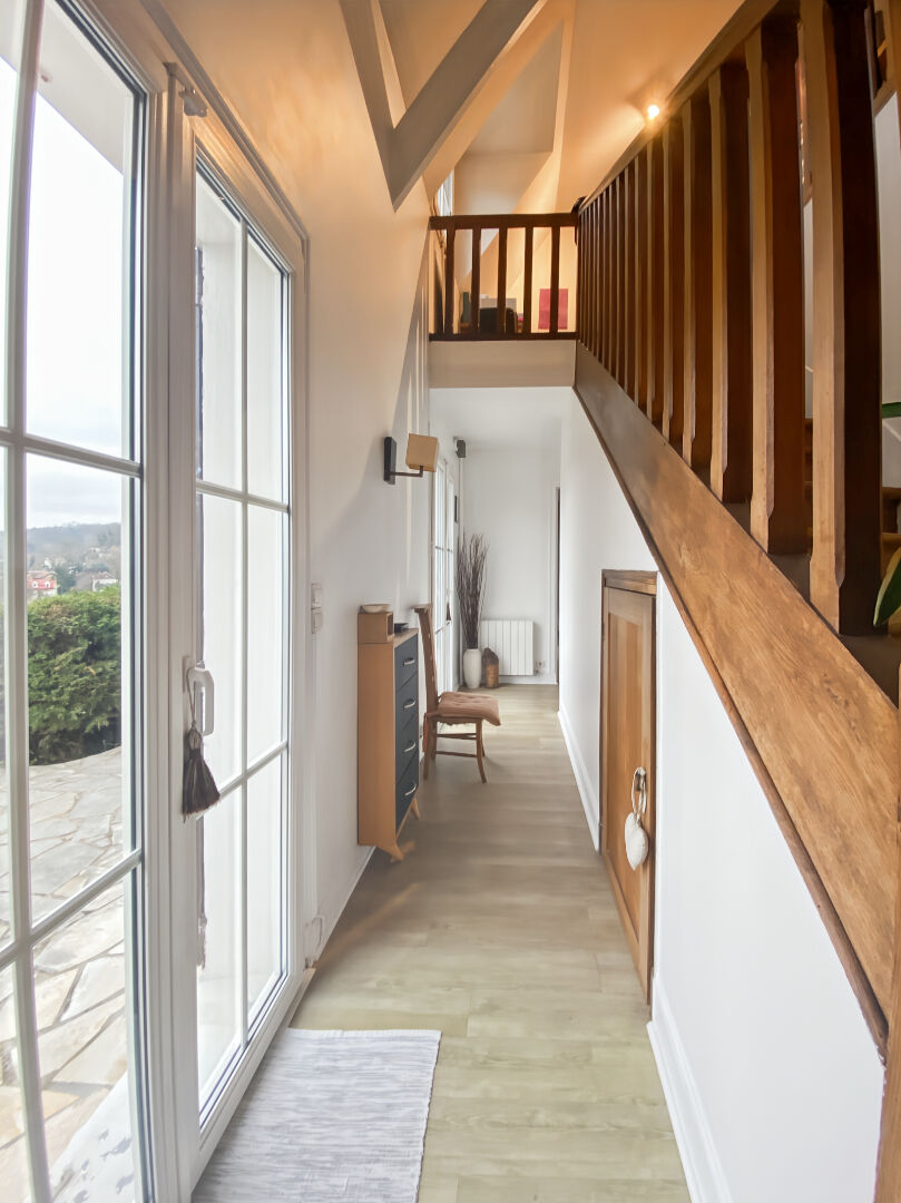Belle mezzanine surplombant le séjour faisant office de bureau, salon tv, trois chambres et une salle de douches.