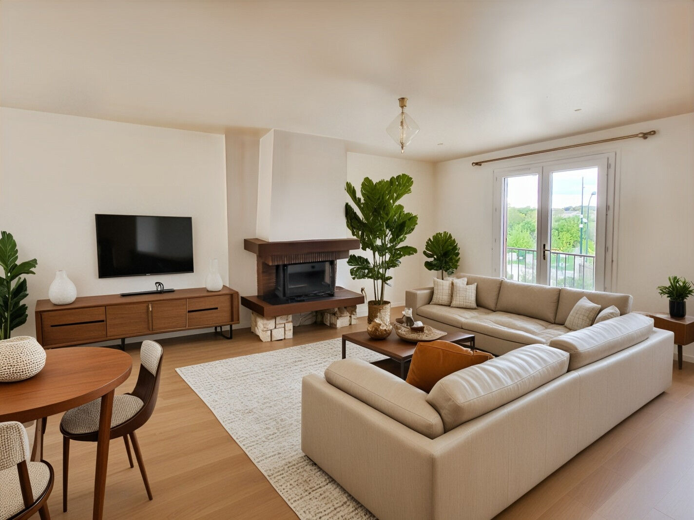 Cette propriété de 83m² se compose d'une entrée, d'un salon-séjour d'environ 28m² à double expositions avec sa cheminée à insert pour des soirée cocooning et d'une cuisine indépendante meublée de 9m² pouvant être ouverte sur le séjour.