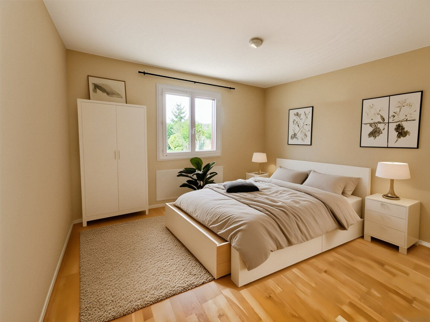 Ensuite, un dégagement desservira la partie nuit avec deux grandes chambres de 11m² et 12m² et leur placard intégré, d'un WC indépendant et d'une salle de bains.