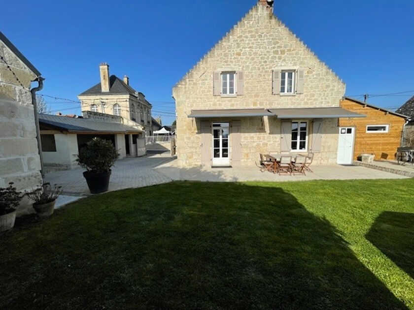 Près de Soissons, charmante maison, dans un environnement idéal, offrant une belle et spacieuse pièce de vie avec cuisine ouverte aménagée, un bureau, cellier. A l'étage, palier, 3 chambres, mezzanine. Une dépendance aménagée offrant 2 chambres, sdd, wc. Cave et abris Terrasse. Ref : 356.