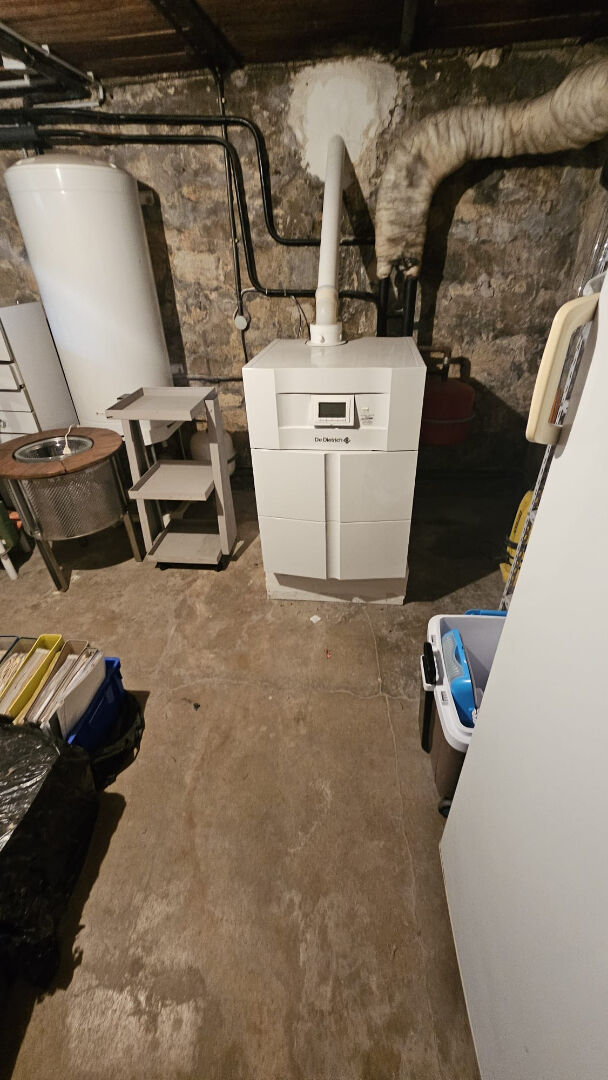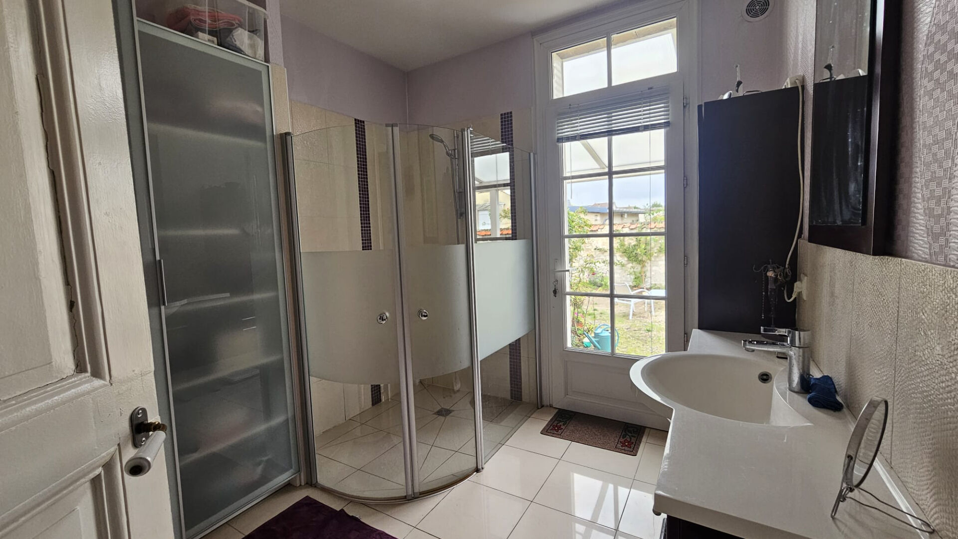 A deux pas du centre ville, maison offrant entrée, cuisine, séjour double, salle de douche, wc et dégagement. A l'étage, palier, deux chambres, salle de bains et wc. Cave, chaufferie et garage. Ref : 392.