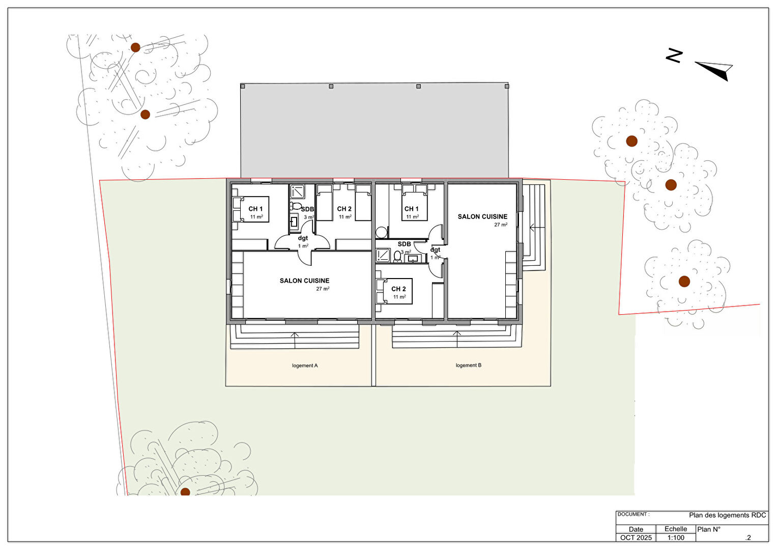 Dans un cadre naturel, sans vis-à-vis, sur une parcelle de 1080 m², cette maison individuelle est composée de 2 appartements de type T3 composés chacun d'un séjour-cuisine, une salle d'eau/wc et de 2 chambres.