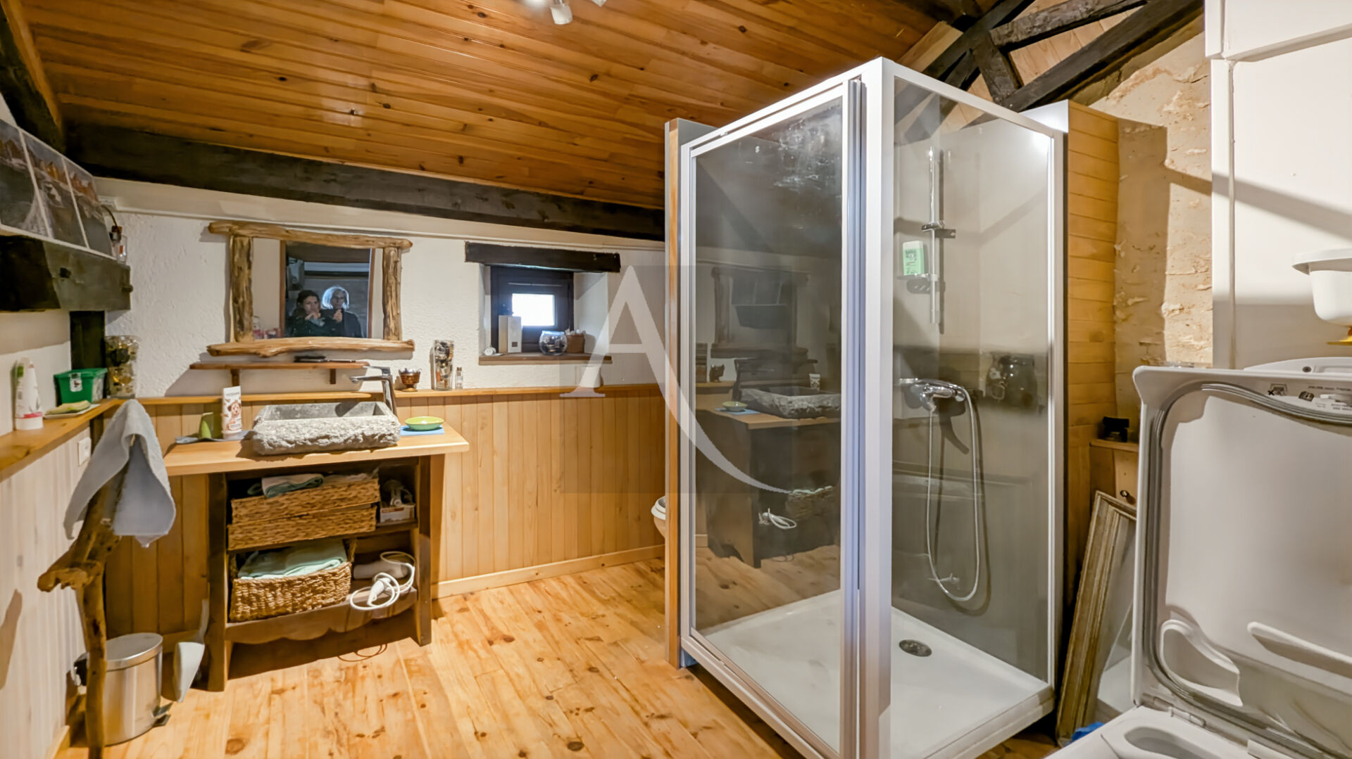 Découvrez cette atypique maison en pierre, nichée dans un hameau plein de charme ! Au rez-de-chaussée, laissez-vous séduire par un vaste séjour double avec un jolie poêle à bois et une cuisine chaleureuse qui s'ouvre sur une grande terrasse extérieure. À l'étage, un palier accueillant vous mène vers une magnifique chambre avec salle de bain, sans oublier la seconde chambre dotée d'une salle d'eau. En prime, une grange non attenante vient enrichir ce bien exceptionnel.