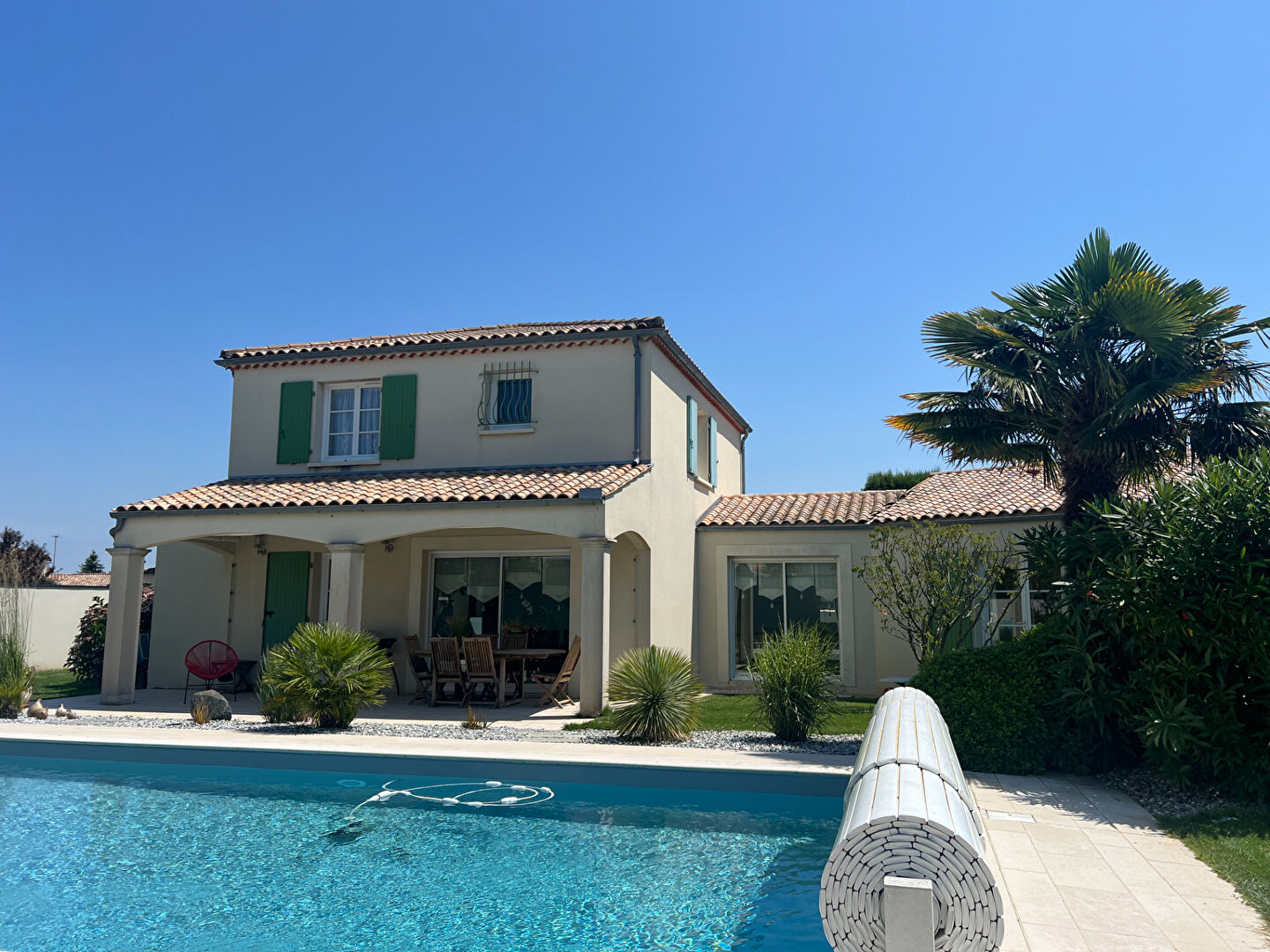 Maison avec belles prestations de 167m² habitable proche des commerces offrant au rdc: hall d'entrée, salon, séjour, cuisine indépendante aménagée et équipée, cellier, deux chambres dont une avec dressing, salle de bains avec douche et baignoire, wc avec lave mains. A l'étage : une mezzanine, deux chambres, salle d'eau avec wc.