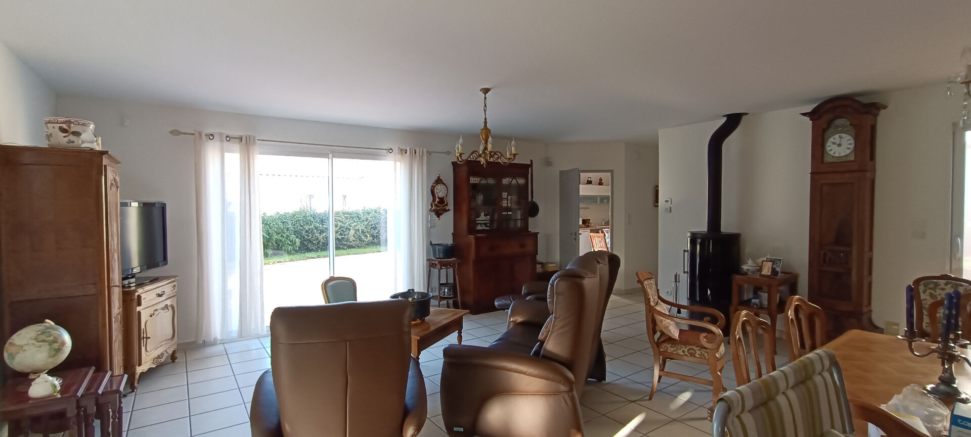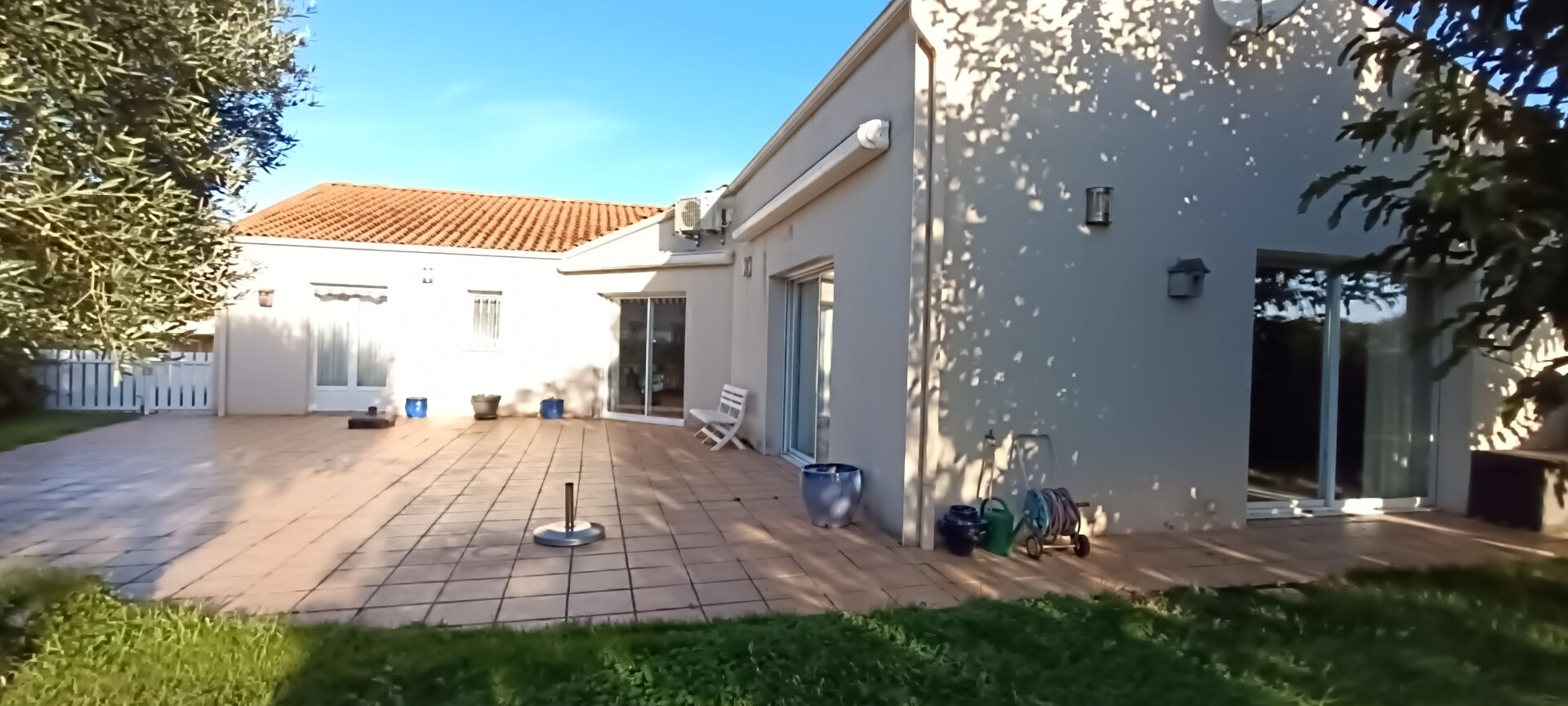 Maison située proche du centre de Soubise, à 10min de la mer comprenant: entrée avec placard aménagé, cuisine aménagée et équipée, salon séjour avec poêle à bois, cellier, wc avec lave mains, dégagement desservant trois chambres avec placard aménagé , salle de bain et wc avec lave mains et un second dégagement desservant: bureau avec patio, salle d'eau et chambre avec placard aménagé. Grande terrasse carrelée. Garage isolé avec double porte électrique. Adoucisseur, aspiration centralisée, climatisation dans cuisine, store électrique, forage. Terrain clos et arboré. Raccordement au tout à l'égout et chauffage au sol. Le tout sur une parcelle de 700m².