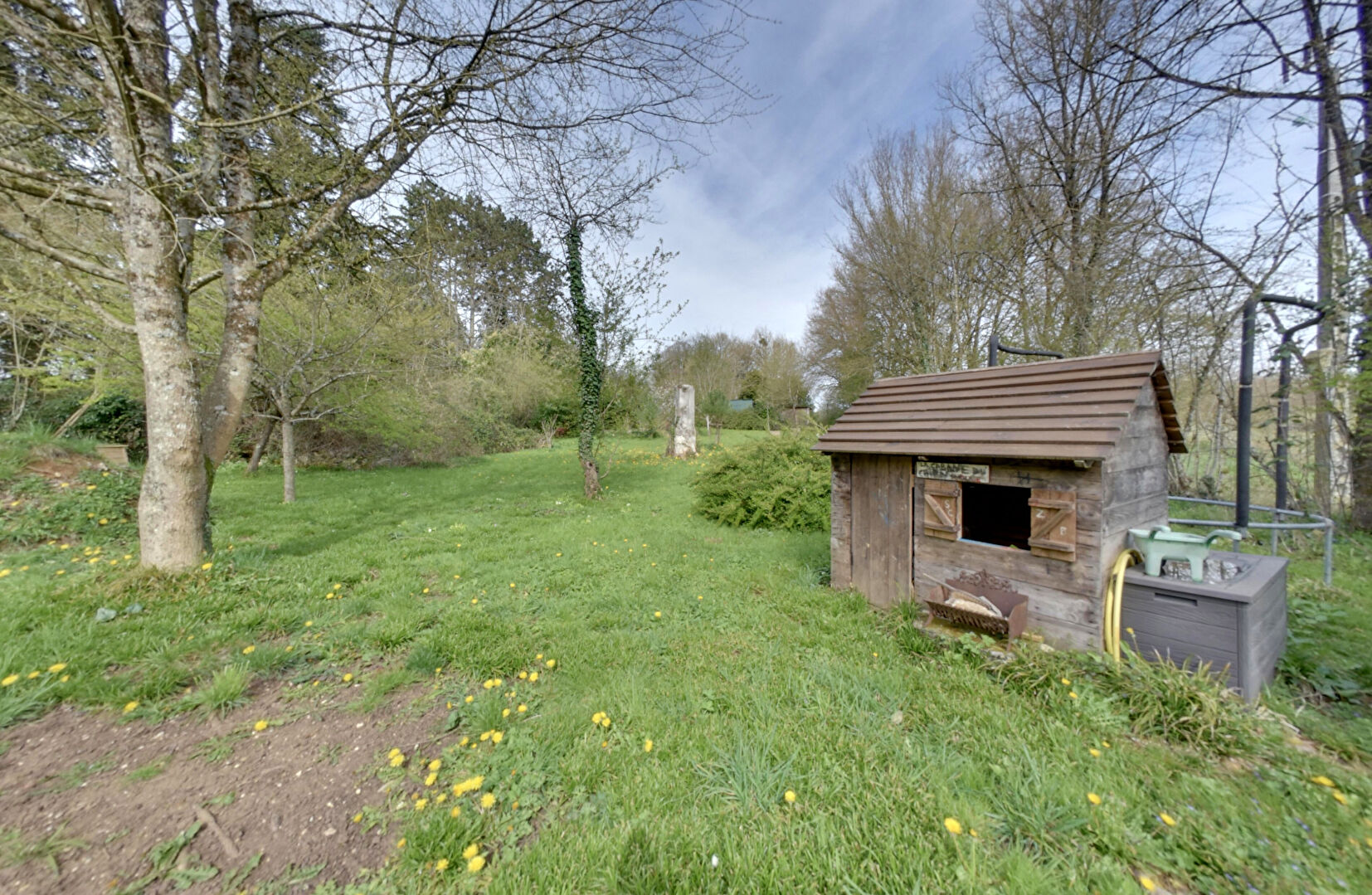 À l'extérieur, vous découvrirez un terrain de 1 500 m², entièrement au calme, sans aucun vis-à-vis et à l'écart de la route. Le jardin arboré et les terrasses invitent à profiter pleinement des beaux jours et des repas en plein air.