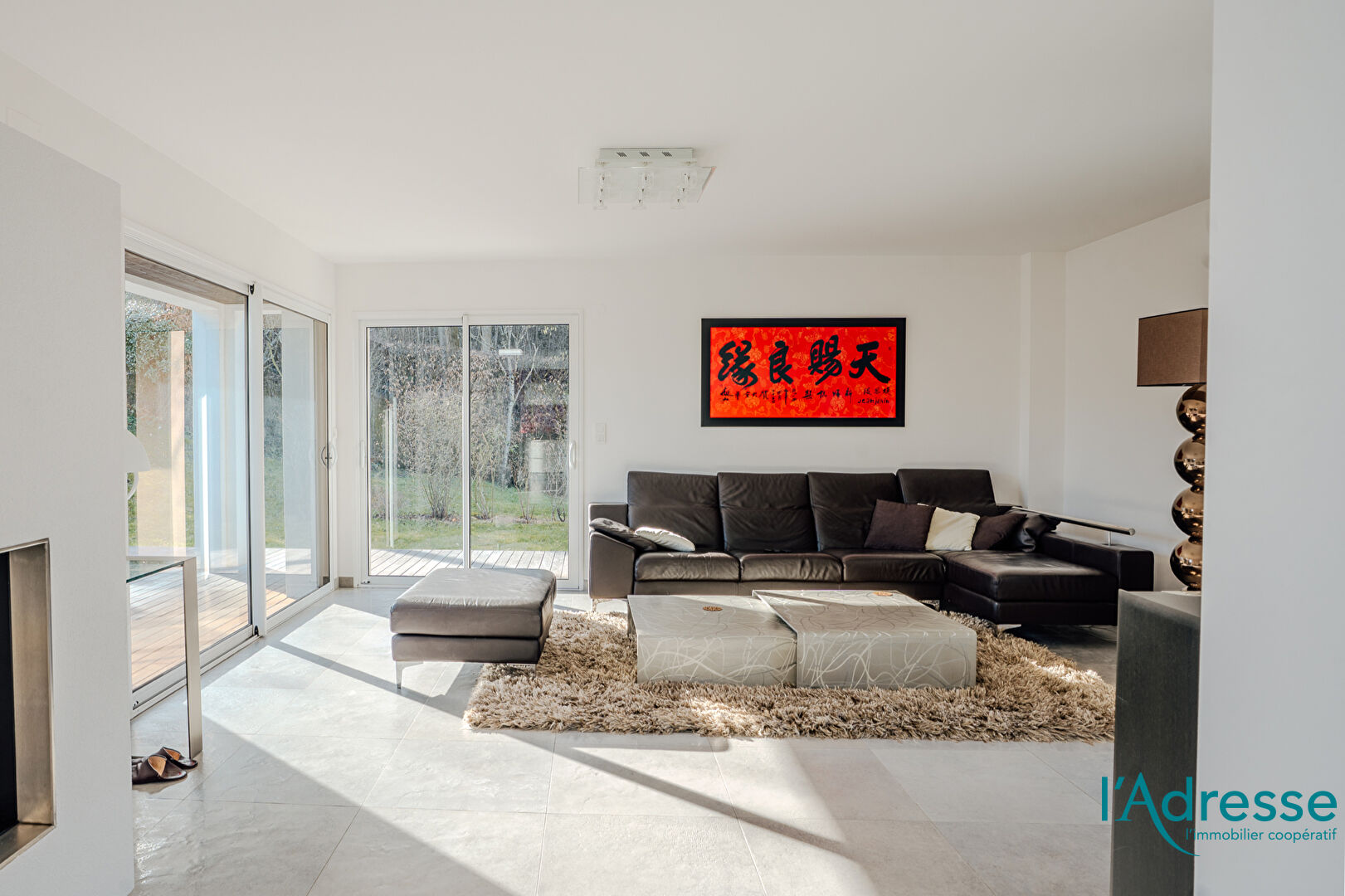- Séjour d'environ 50 m², baigné de lumière, avec cheminée fermée