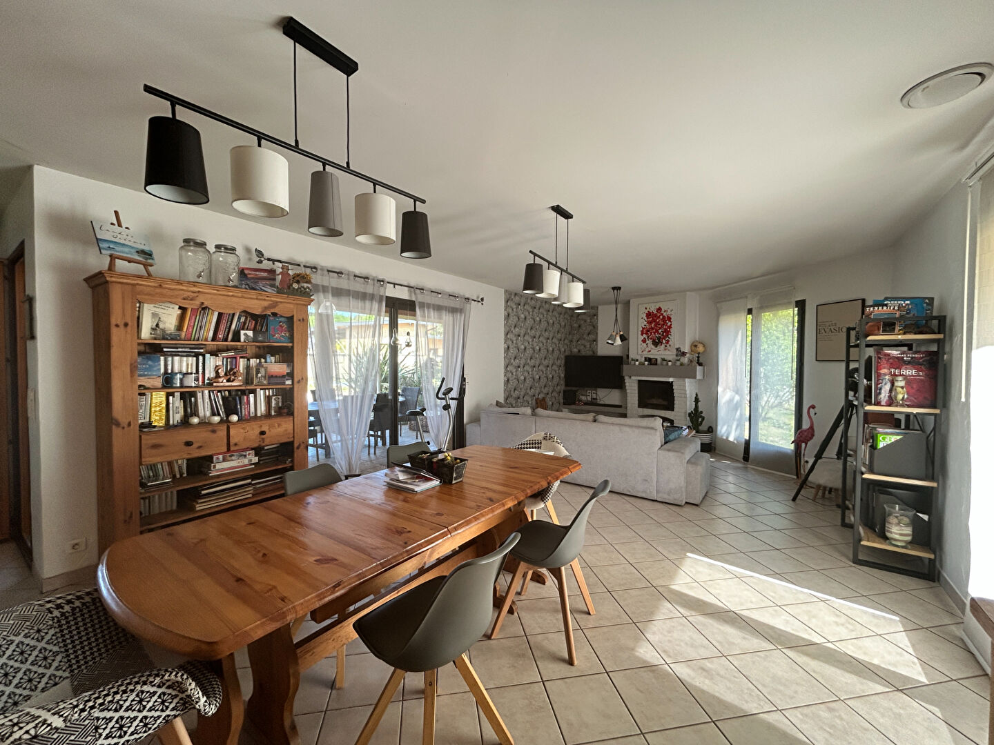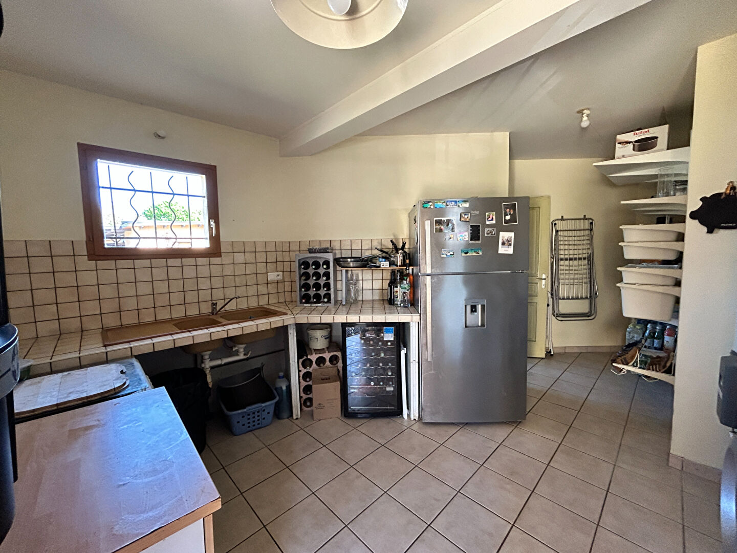 Elle se compose d'une vaste pièce de vie traversante et lumineuse avec cuisine ouverte entièrement équipée et cellier attenant.