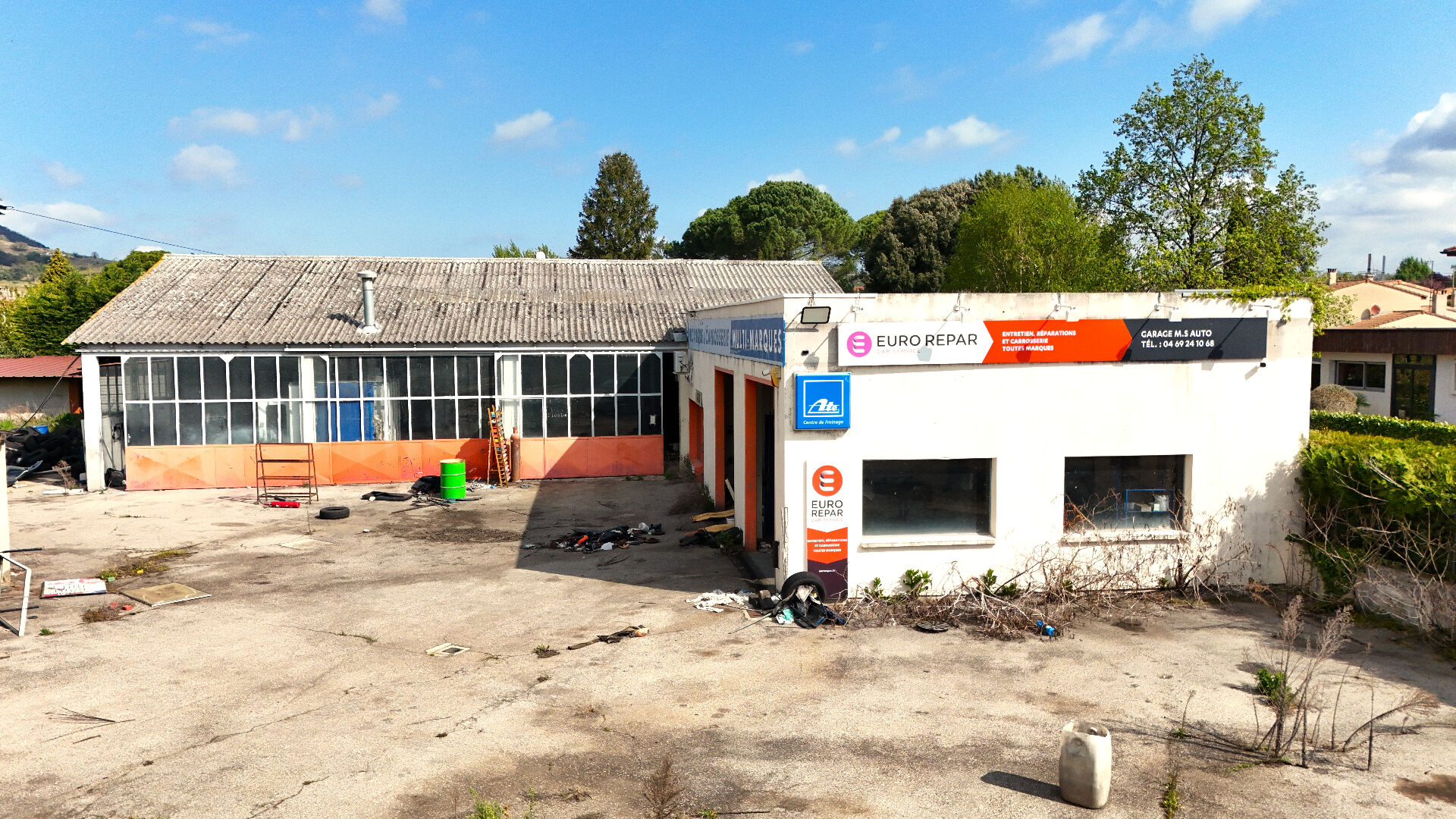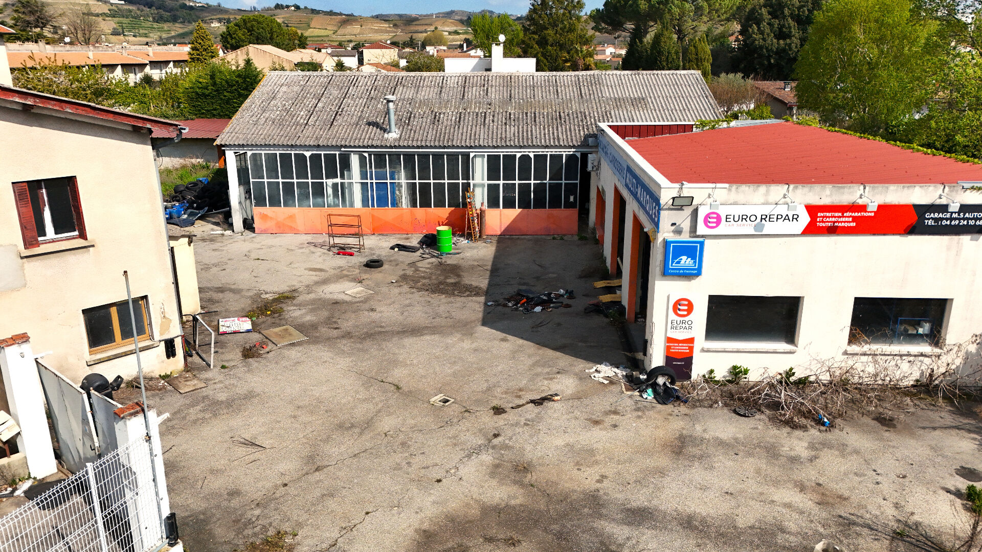 La maison, d'environ 7 pièces, dispose de 5 chambres et offre de belles possibilités d'aménagement pour un usage résidentiel, locatif ou mixte. L'ensemble immobilier bénéficie d'une implantation stratégique, dans une zone facilement accessible et visible, parfaite pour une activité artisanale ou commerciale liée à l'automobile, à la logistique ou à tout autre projet professionnel nécessitant des espaces de stockage.