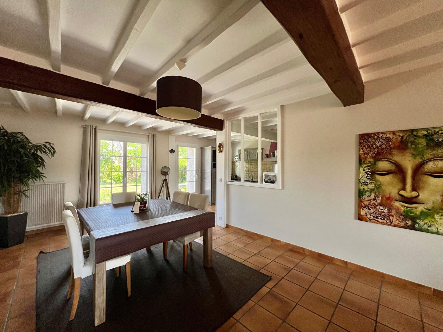La pièce de vie traversante, dispose d'un insert qui apporte chaleur et convivialité. La cuisine aménagée est idéale pour préparer de bons repas. Côté nuit, trois grandes chambres offrent tout l'espace nécessaire pour accueillir votre famille, ainsi qu'une salle de bain et un WC.