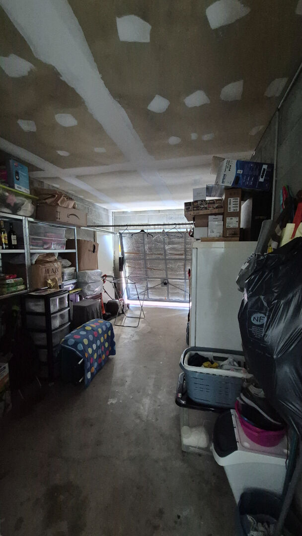 Un garage avec un accès direct à la cuisine de 15.6m² avec son coin lingerie.