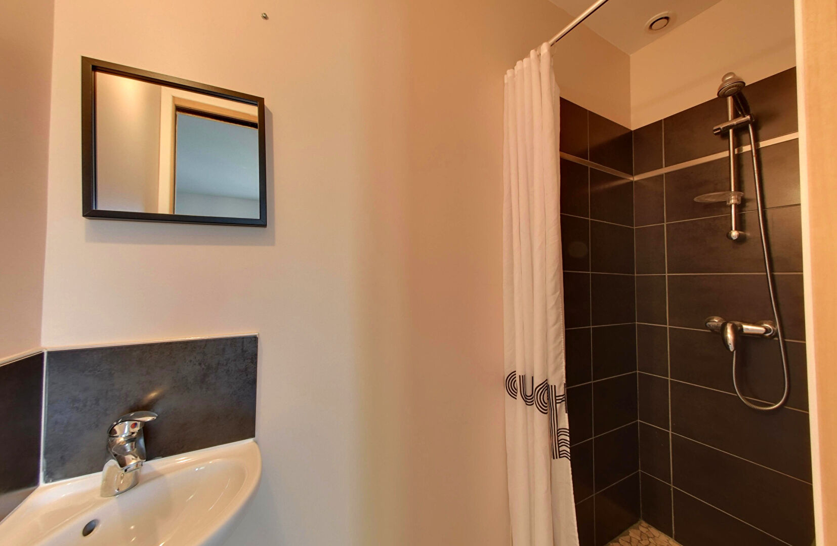 Au rez-de-chaussée, vous découvrirez une entrée donnant sur une pièce de vie lumineuse orientée plein sud, avec cuisine ouverte, aménagée et équipée. Une chambre avec salle d'eau privative ainsi qu'un WC séparé complètent ce niveau.
