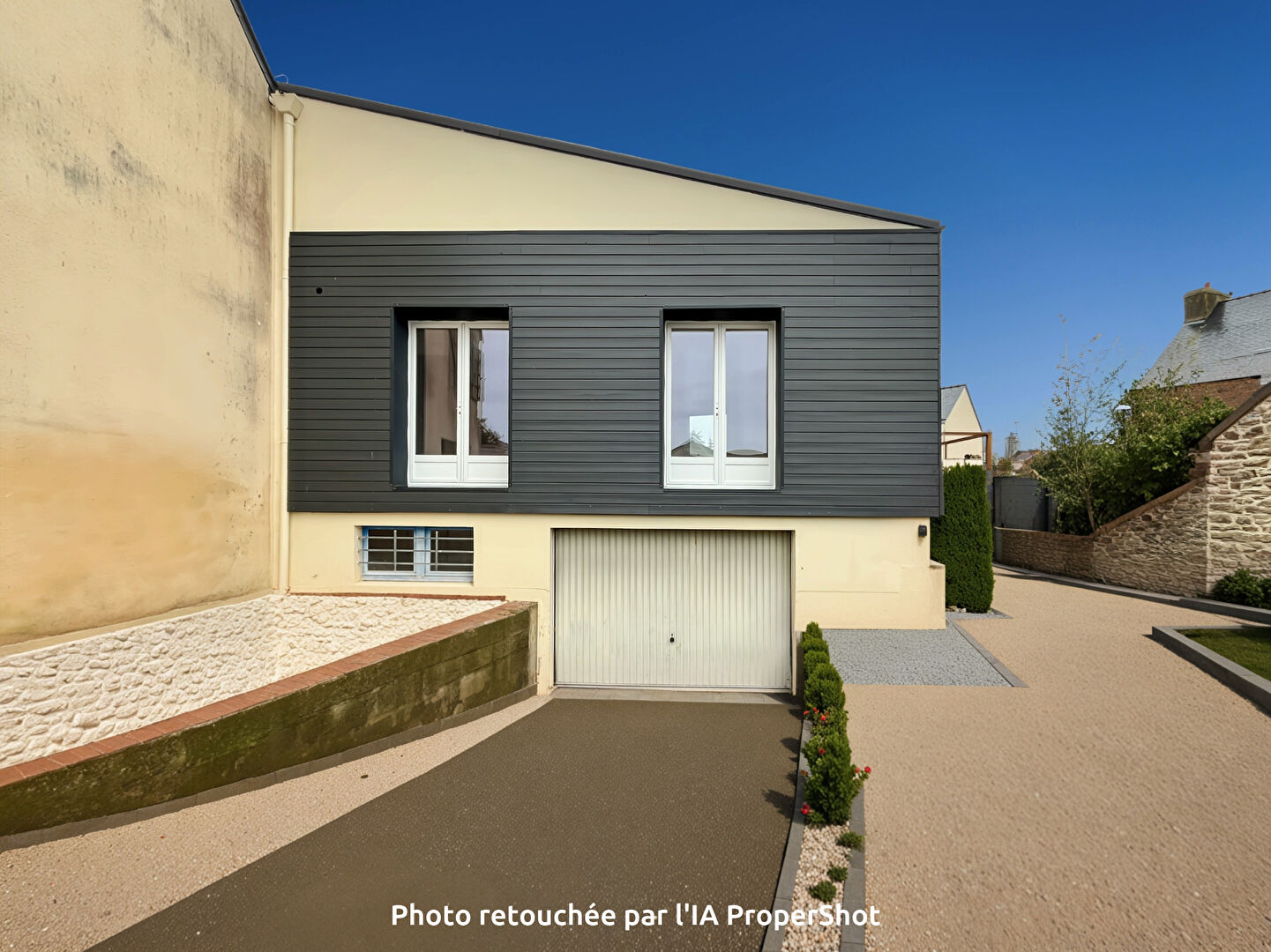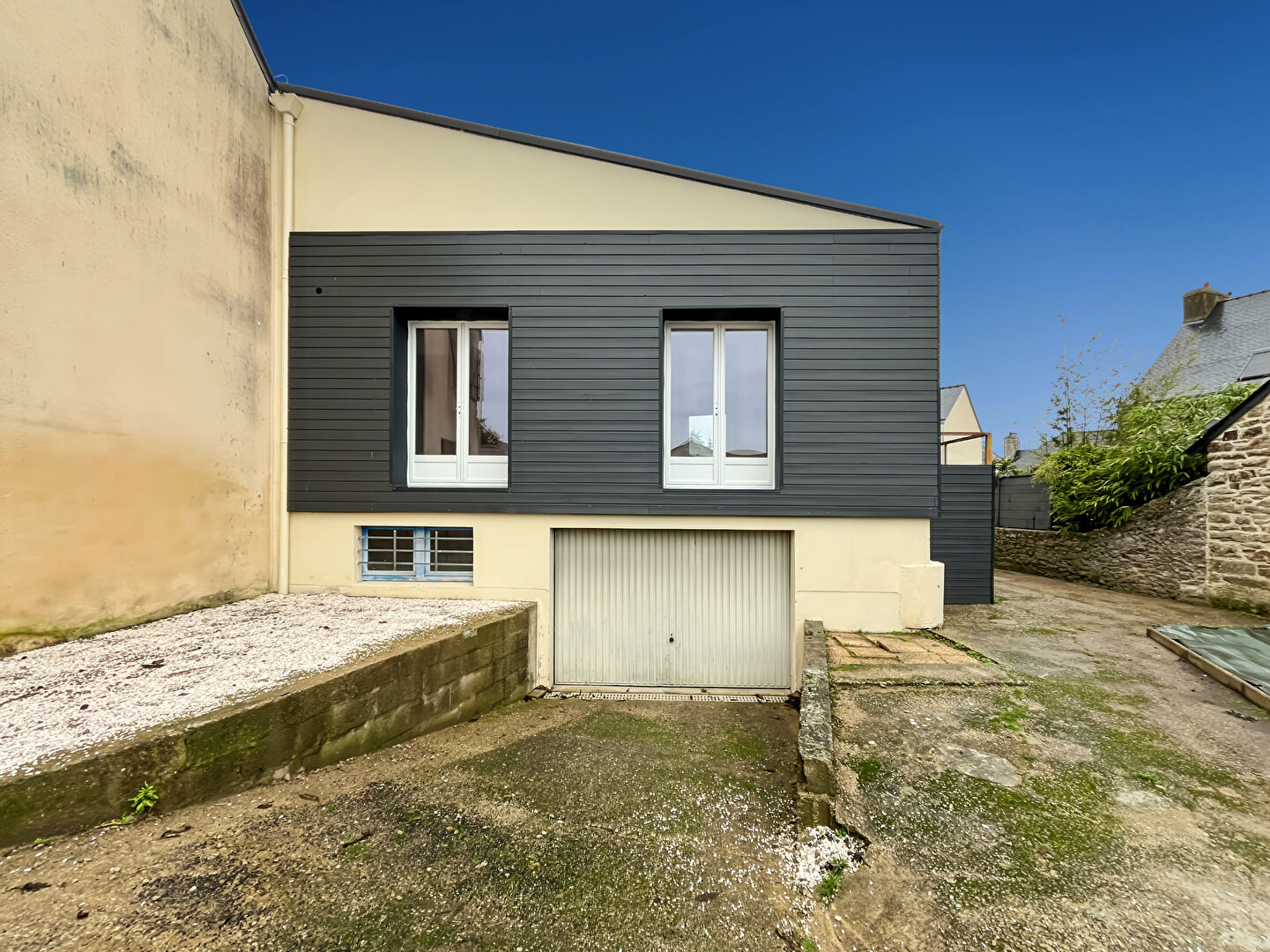 Atout rare : garage de 85 m², deux places de stationnement, et cour aménageable, sans vis-à-vis.