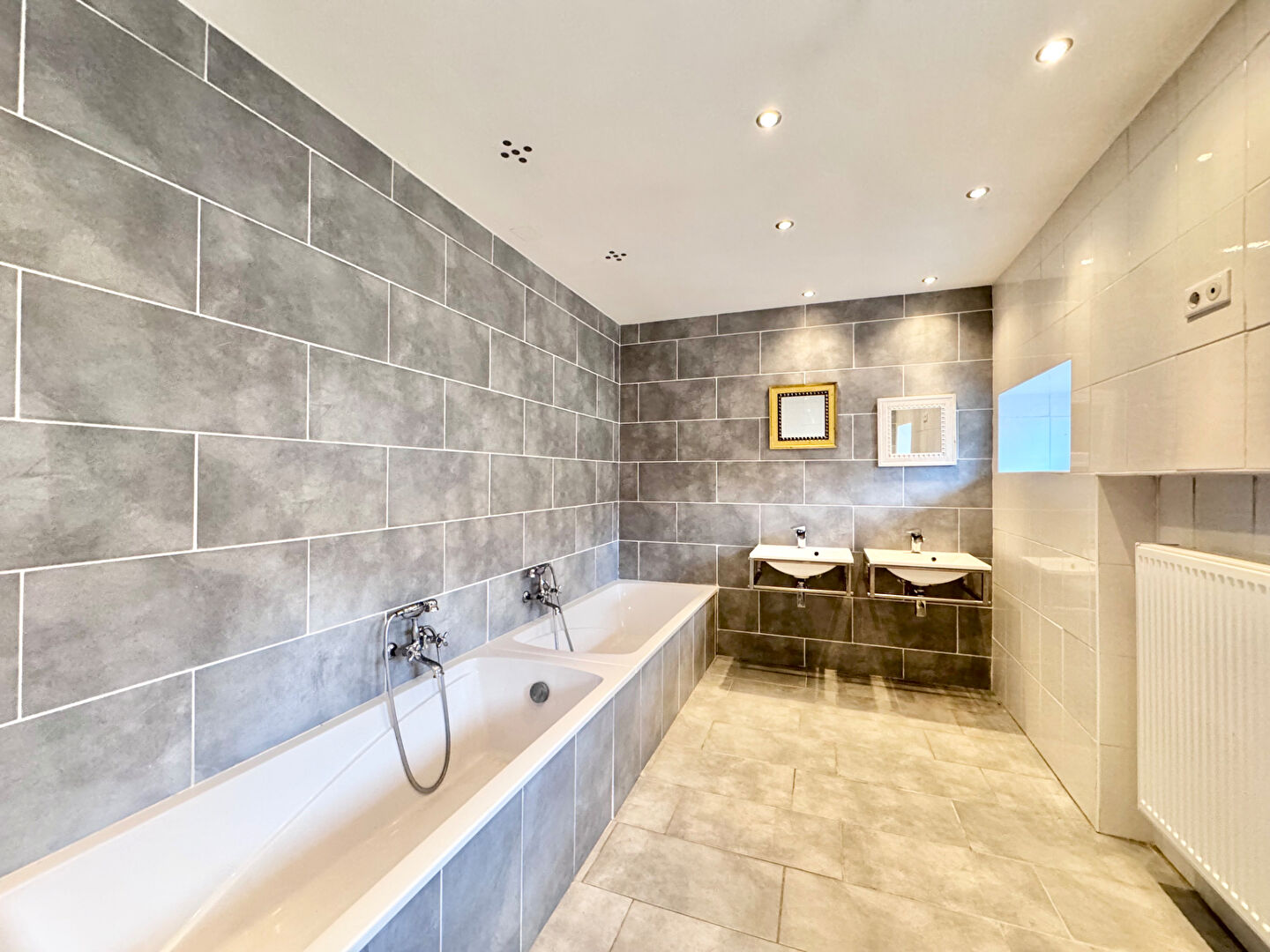L'habitation principale de + de 100m², située à l'étage, se compose d'une entrée, d'un très vaste espace de vie lumineux, d'une grande cuisine équipée fonctionnelle ouverte sur la pièce de vie avec possibilité de la fermer aisément (cloison ou verrière). À cela s'ajoutent 2 chambres ainsi que d'une salle de douche avec WC et une autre salle de bains avec WC.