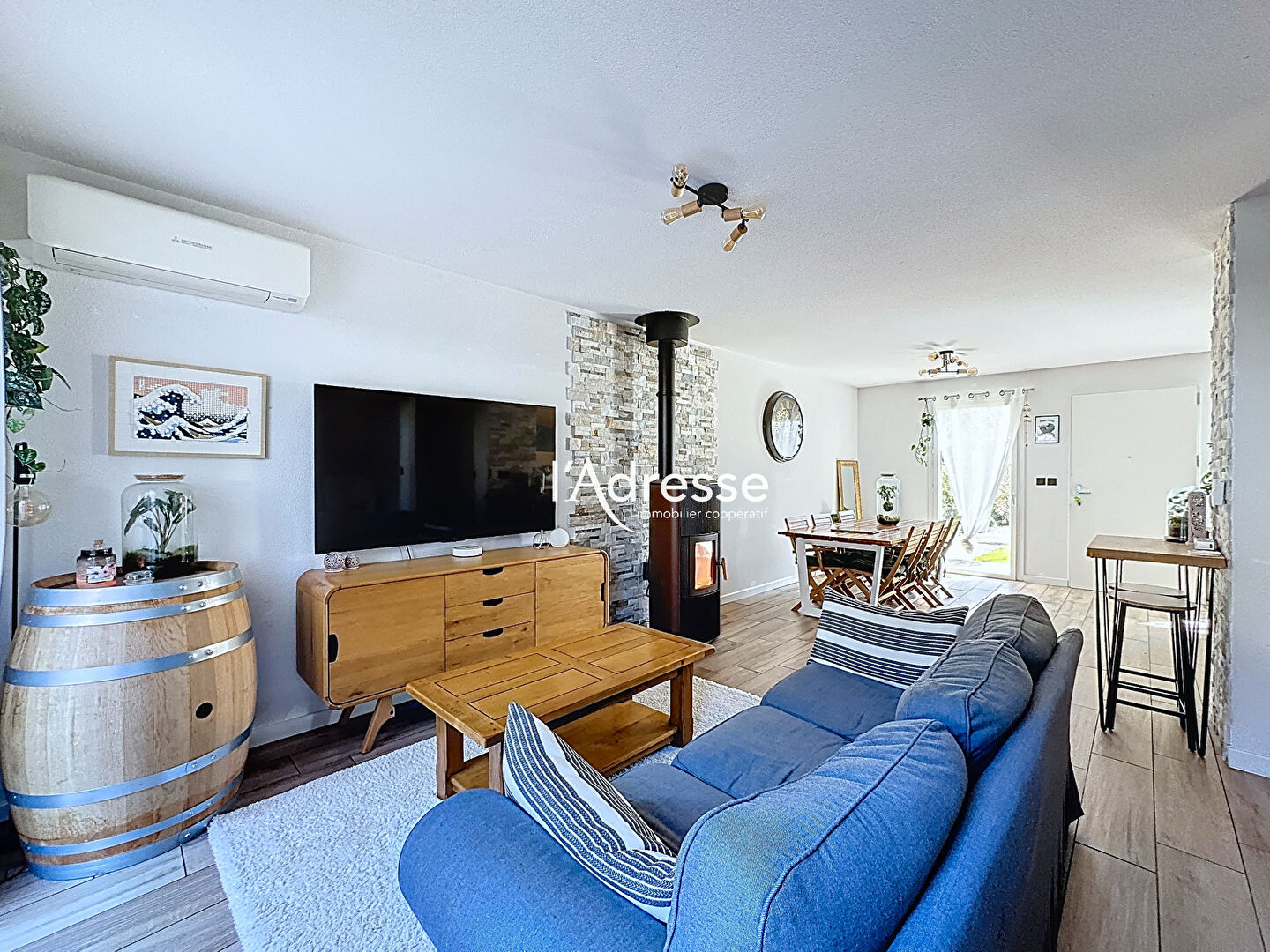 Cette maison T4, en très bon état général, offre un cadre de vie confortable et fonctionnel. Climatisée au rez-de-chaussée comme à l'étage, elle bénéficie également d'un poêle à granulés installé en 2025.