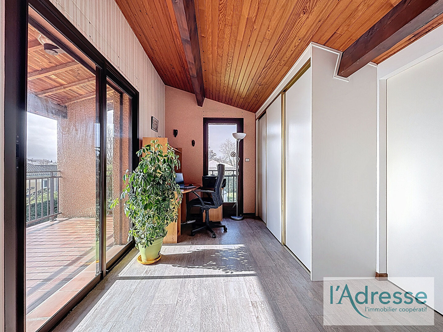 A l'étage, 2 bureaux, une chambre parentale avec sa salle d'eau desservis par un balcon couvert avec vue dégagée.