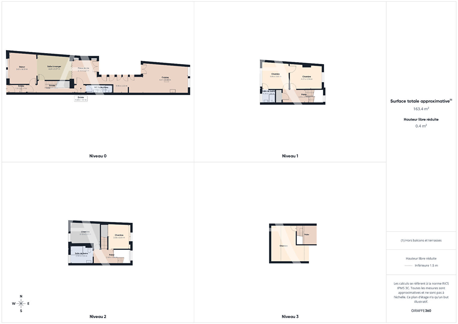 La maison dispose de 5 chambres spacieuses de 10,13 m² à 13,70 m² , répartis sur 3 niveaux, parfaitement adaptées à une vie de famille.