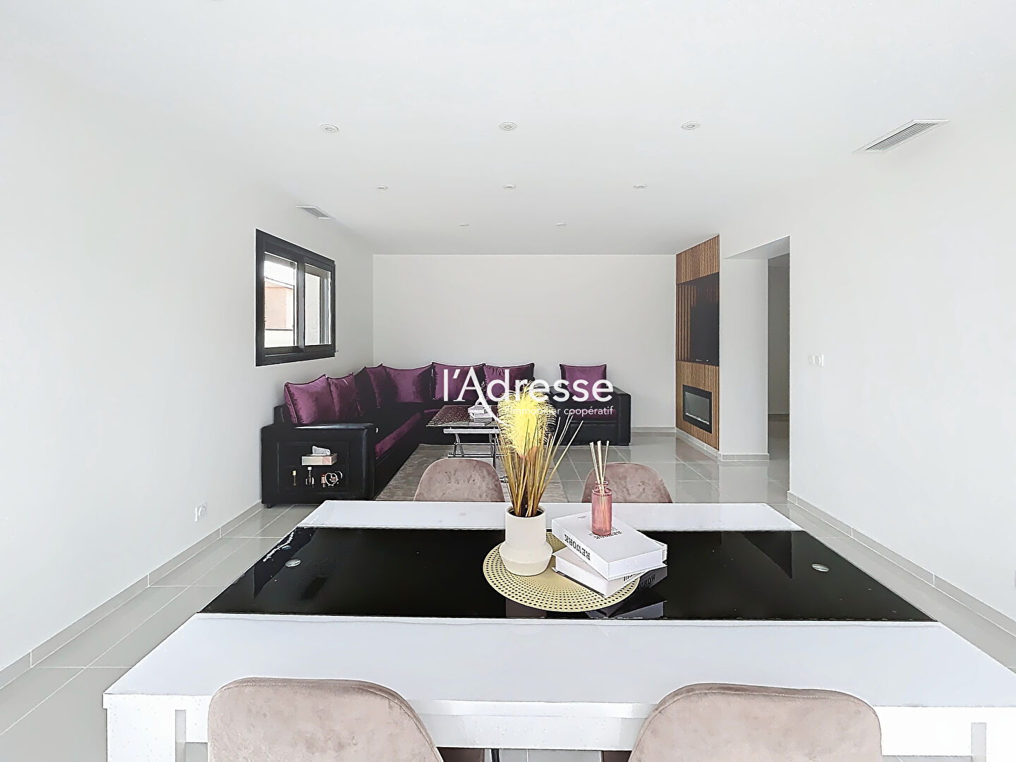 Cette maison moderne dispose d'un espace de vie spacieux et lumineux.