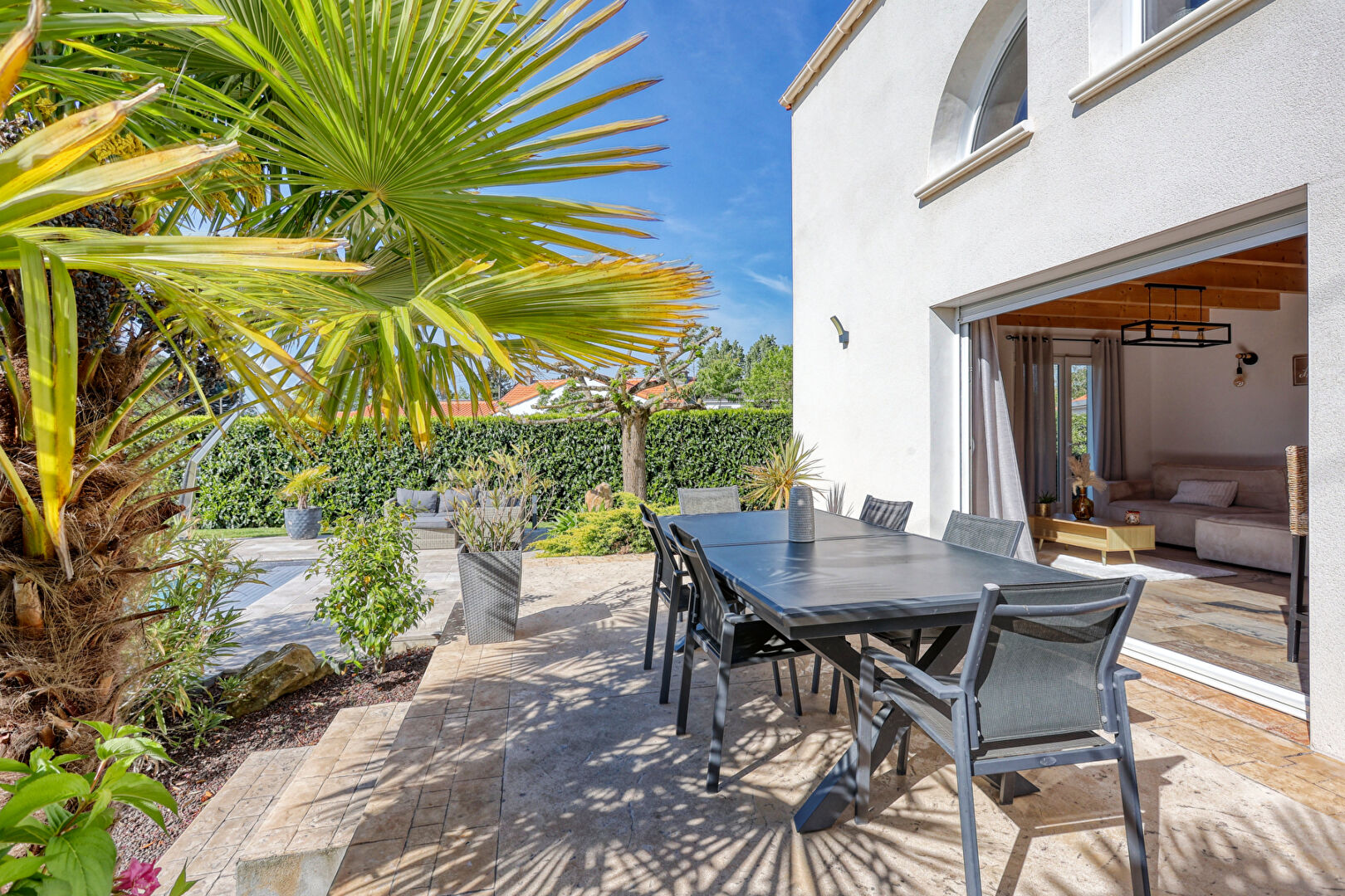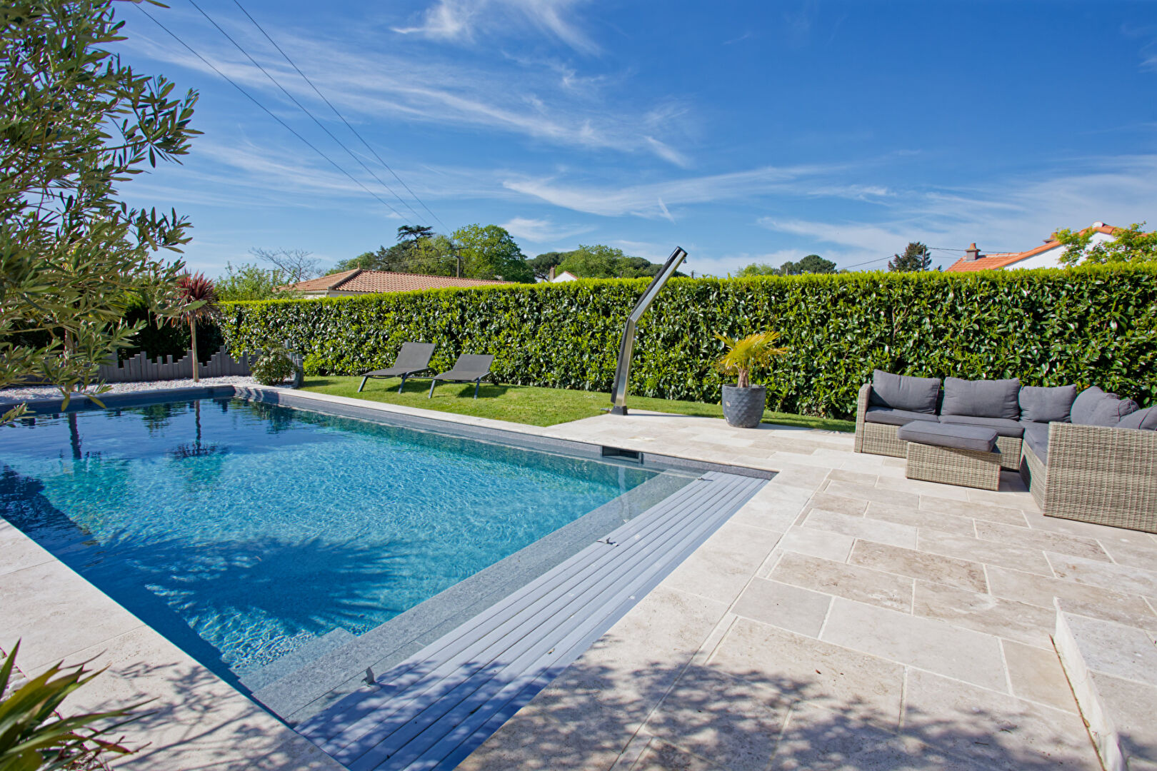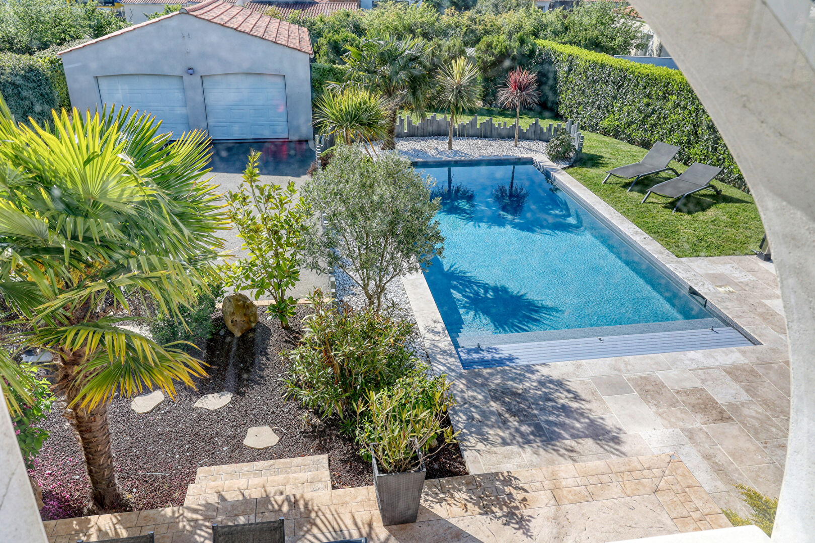 À l'extérieur, le bien révèle tout son potentiel : une parcelle généreuse de plus de 3 000 m², entièrement paysagée, s'articulant harmonieusement autour d'une superbe piscine, véritable coeur de vie aux beaux jours. Un cadre privilégié pour recevoir, se détendre et profiter pleinement des extérieurs.