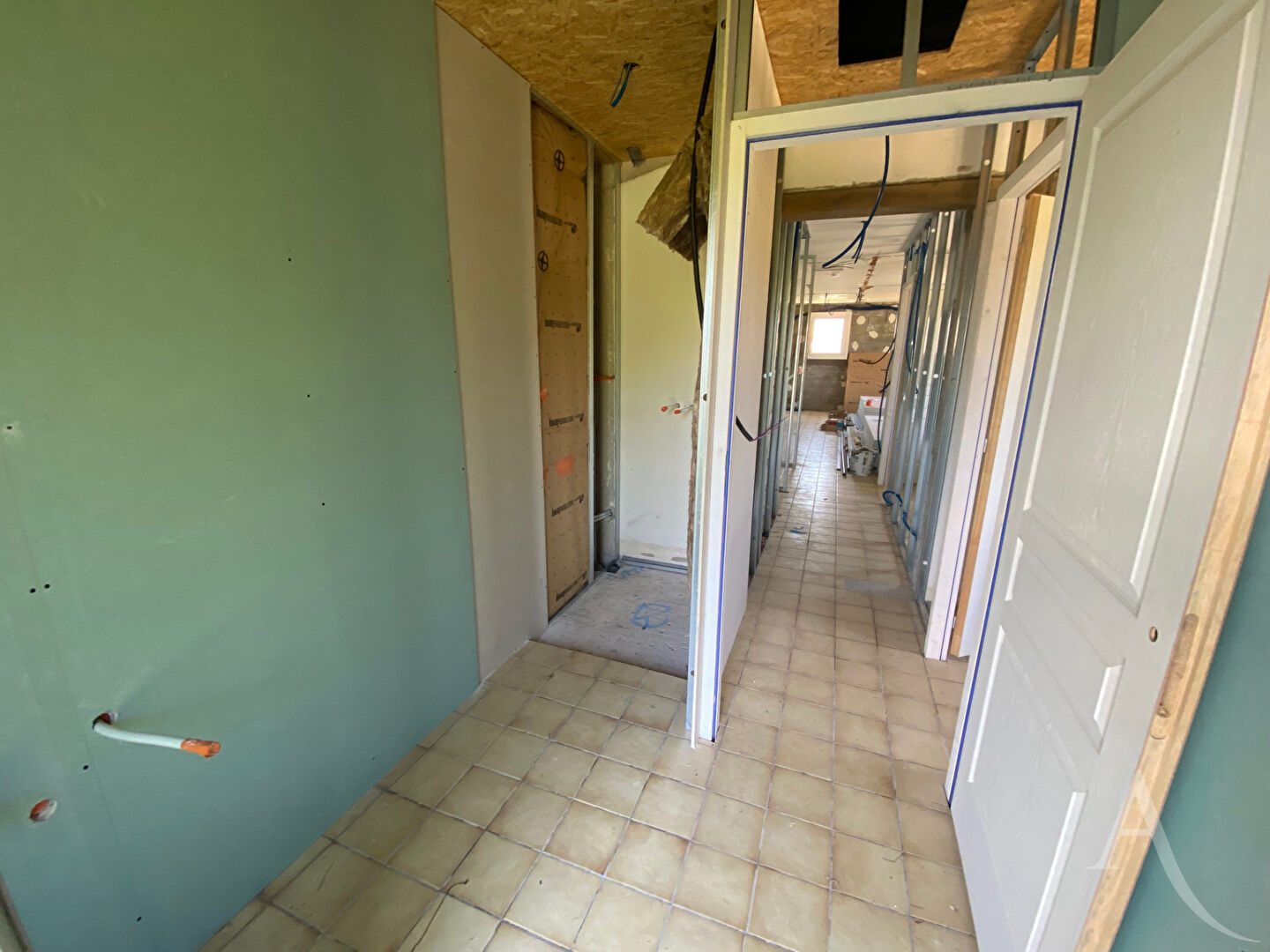 La maison, en cours de rénovation, offre un potentiel total de 114m2 environ de surface habitable avec une pièce de vie et son espace cuisine, 2 chambres, espace salle d'eau et WC sur le 1er niveau. Au sous-sol : une grande pièce à aménager . Extension possible sur 400m2 de terrain.