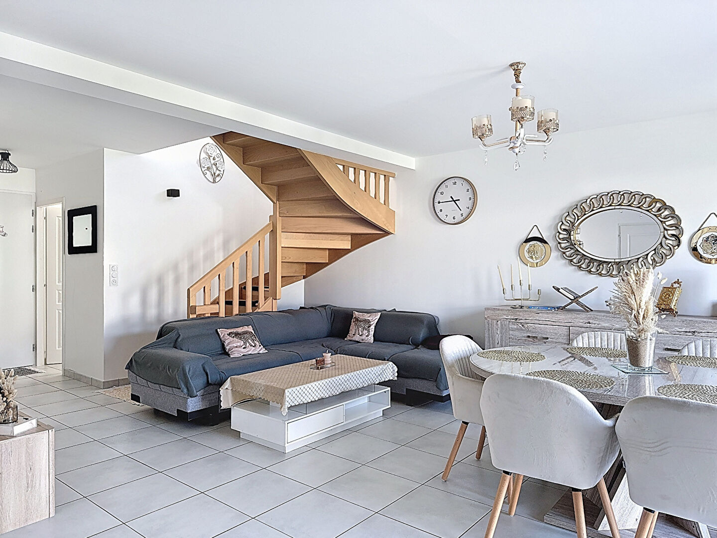 D'une surface habitable d'environ 85 m², cette maison offre une belle pièce de vie de 35 m² bénéficiant d'une double exposition est-ouest, apportant une luminosité naturelle tout au long de la journée et un cadre de vie particulièrement agréable. Le rez-de-chaussée dispose également d'une salle d'eau fonctionnelle.