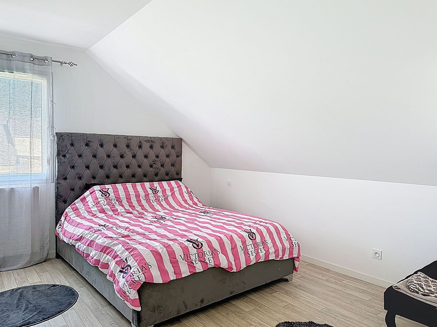 À l'étage, vous découvrirez trois chambres confortables avec une belle hauteur sous plafond, dont une de 17m² au sol, ainsi qu'une grande salle de bain.