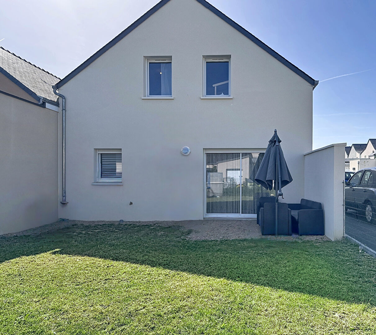 La maison est située à l'entrée d'une impasse, dans un environnement calme, avec un voisinage agréable. Deux places de stationnement sont disponibles à l'avant de la maison.