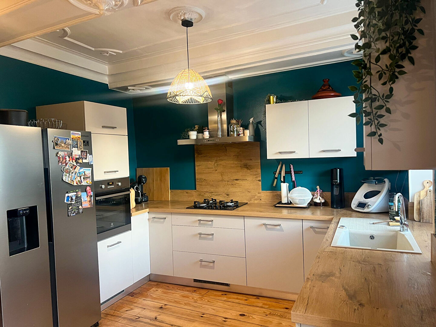 Édifiée sur une parcelle de 300 m², la maison développe 157 m² habitables sans aucun travaux à prévoir. La pierre apparente, les moulures anciennes et le parquet en bois viennent sublimer une rénovation soignée et contemporaine.