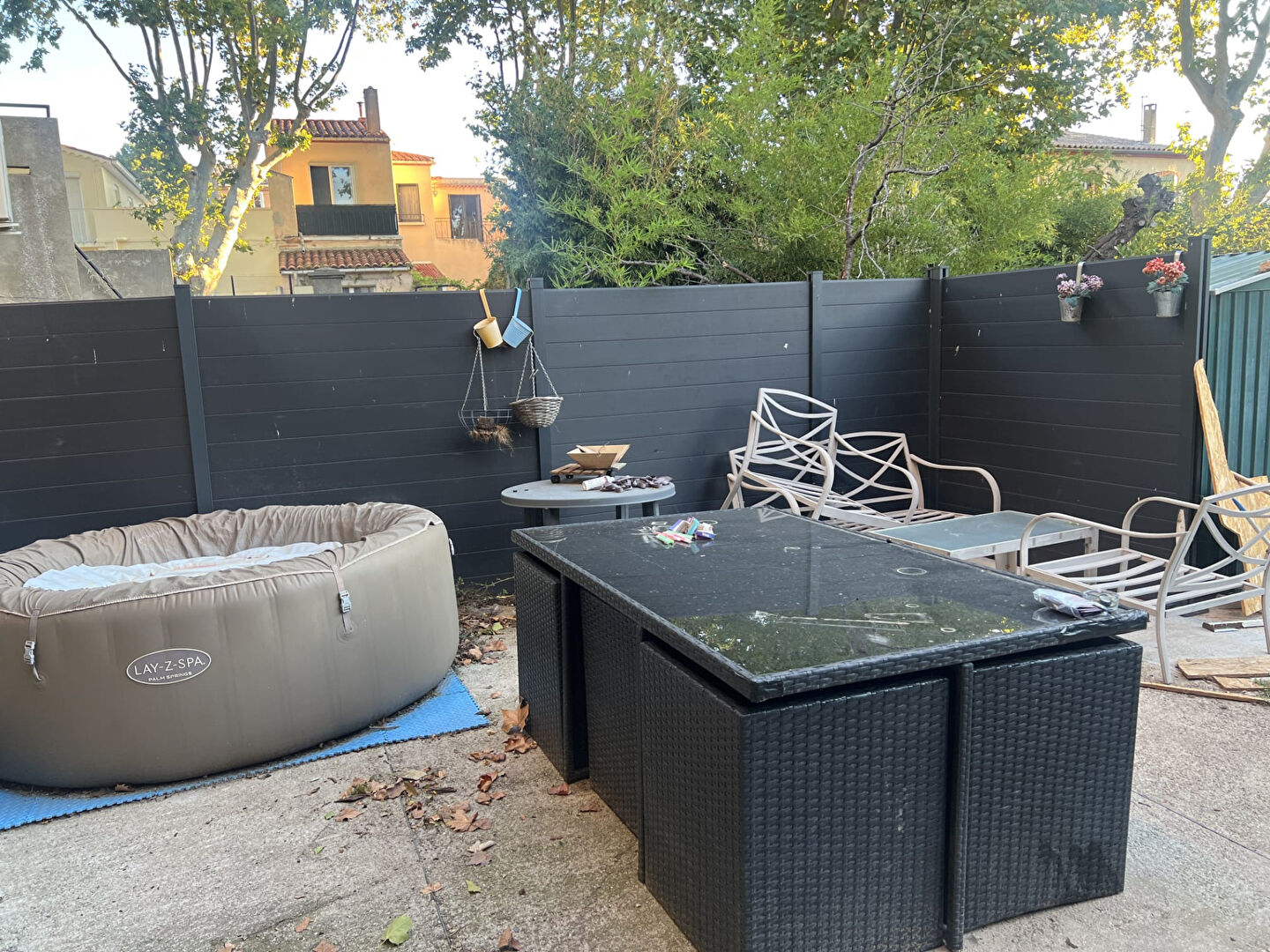 À l'arrière de la maison, un jardin intime de plus de 200 m² offre un véritable havre de tranquillité, agrémenté d'une terrasse et d'essences méditerranéennes telles qu'un olivier et des agrumes, rappelant l'esprit des maisons de campagne du Sud.