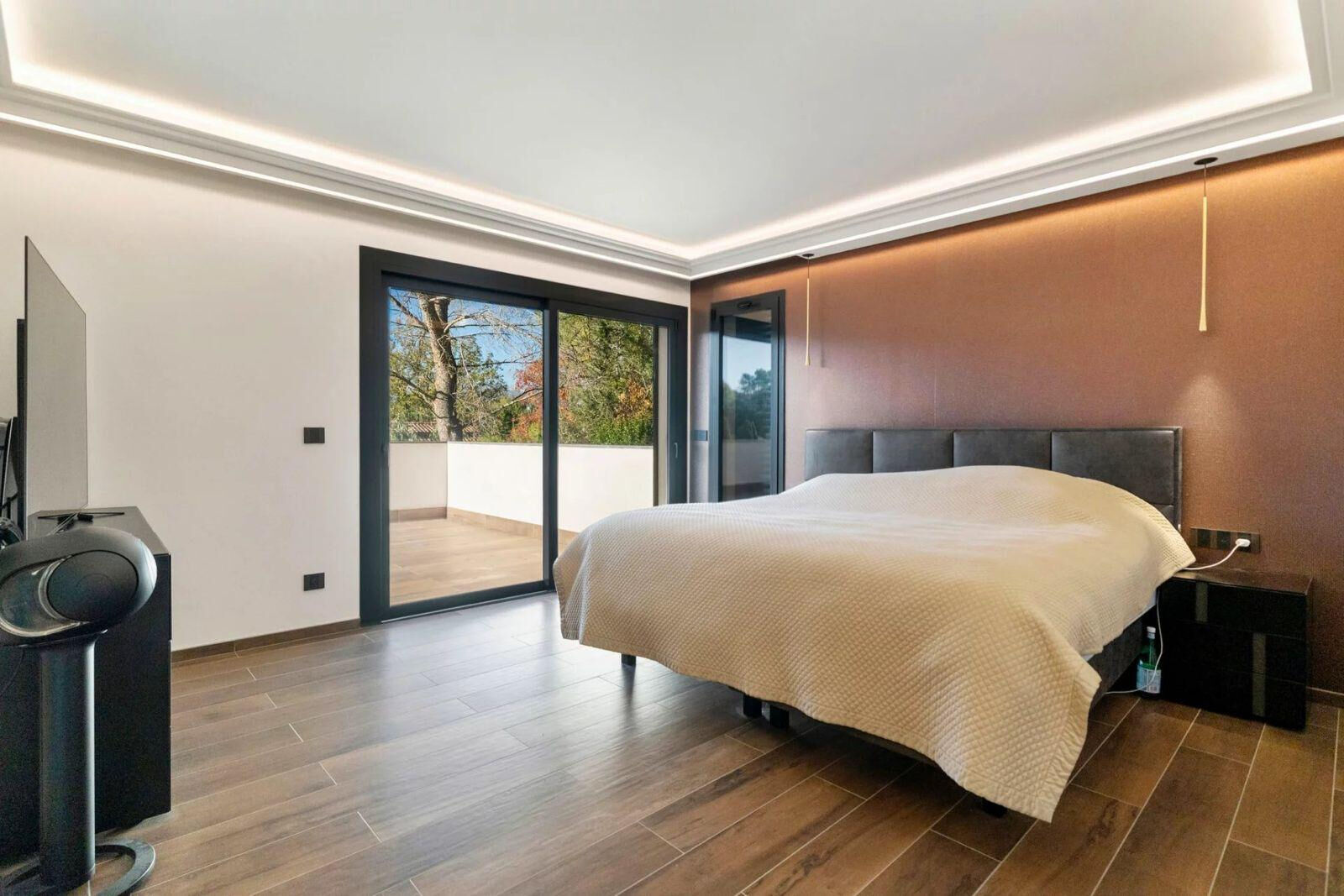 La suite parentale, véritable espace d'exception, dispose d'un dressing, d'une vaste salle de bain avec douche à l'italienne et baignoire, ainsi que d'une grande terrasse privée, offrant un cadre intime et apaisant.