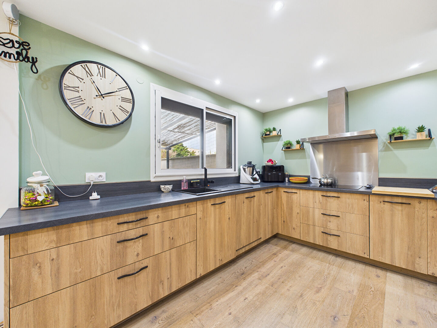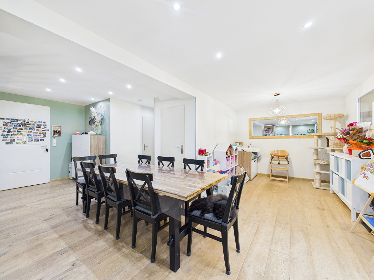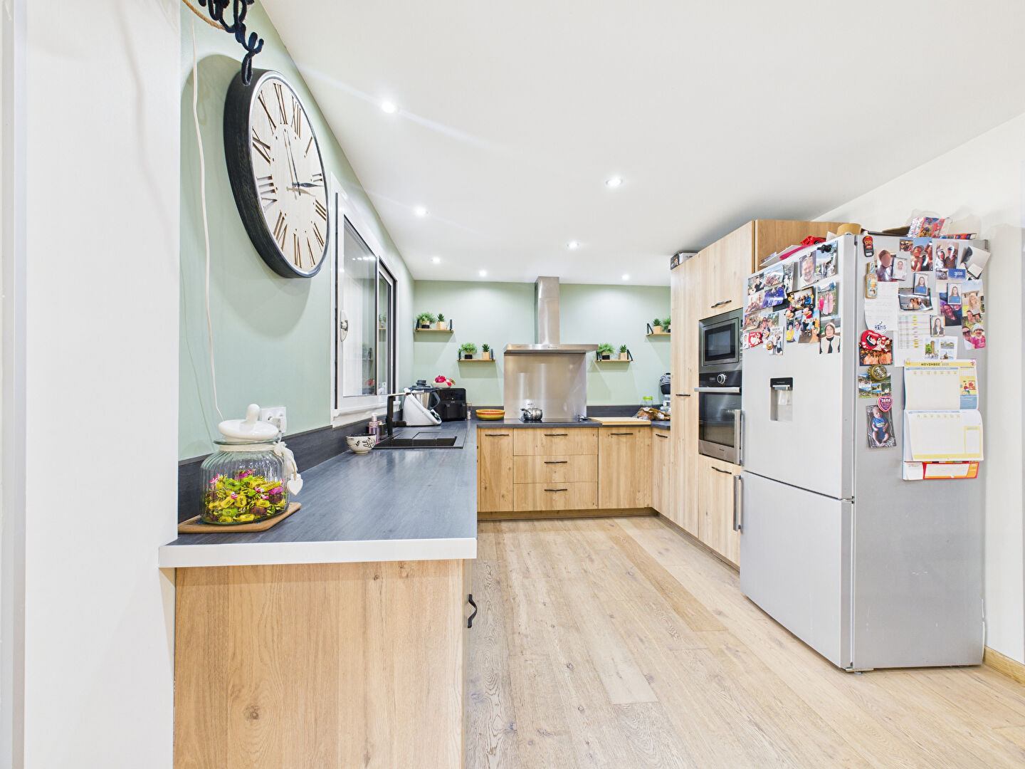 Au rez-de-chaussée, une spacieuse pièce de vie de 45 m² comprenant une cuisine aménagée et équipée ouverte sur le salon-séjour.
