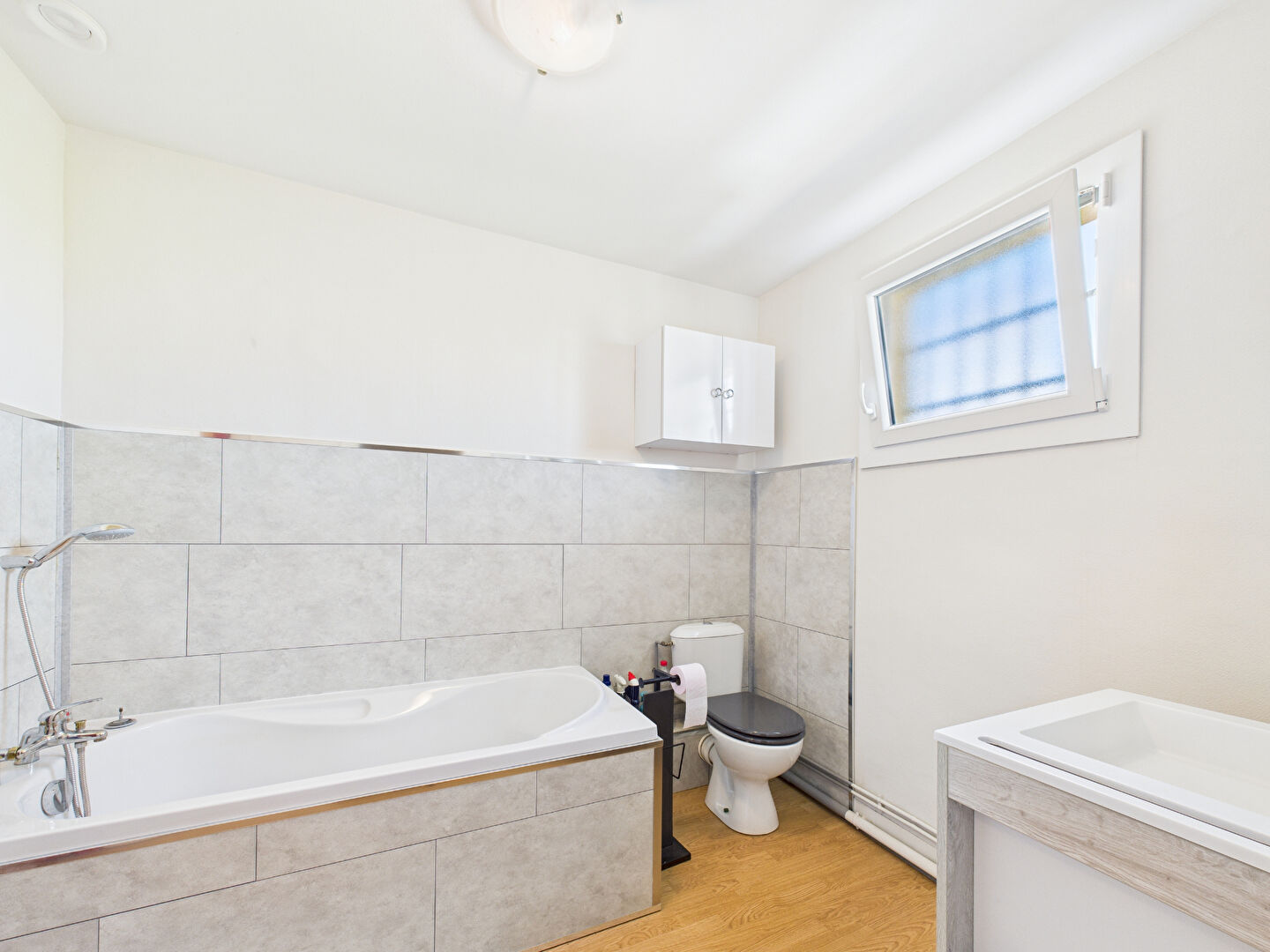 Une salle de bains avec baignoire ainsi qu'un coin buanderie viennent compléter l'espace nuit.
