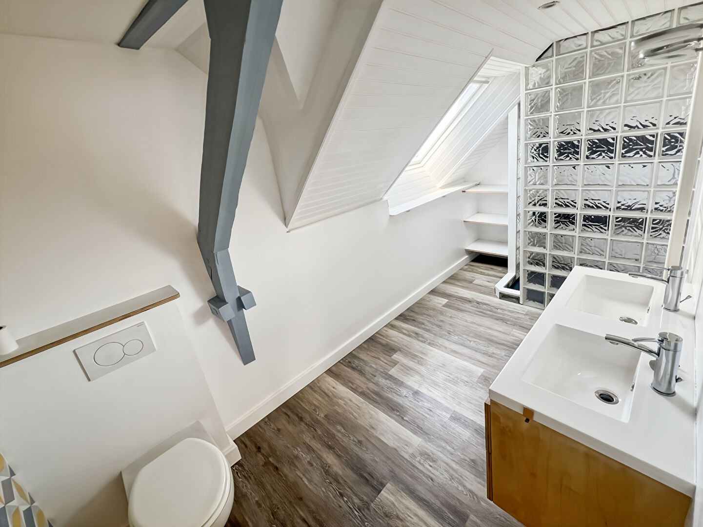 Le rez-de-chaussée propose également une chambre avec salle d'eau : l'idéal pour préserver l'intimité d'un parent, d'un ado ou d'un invité.