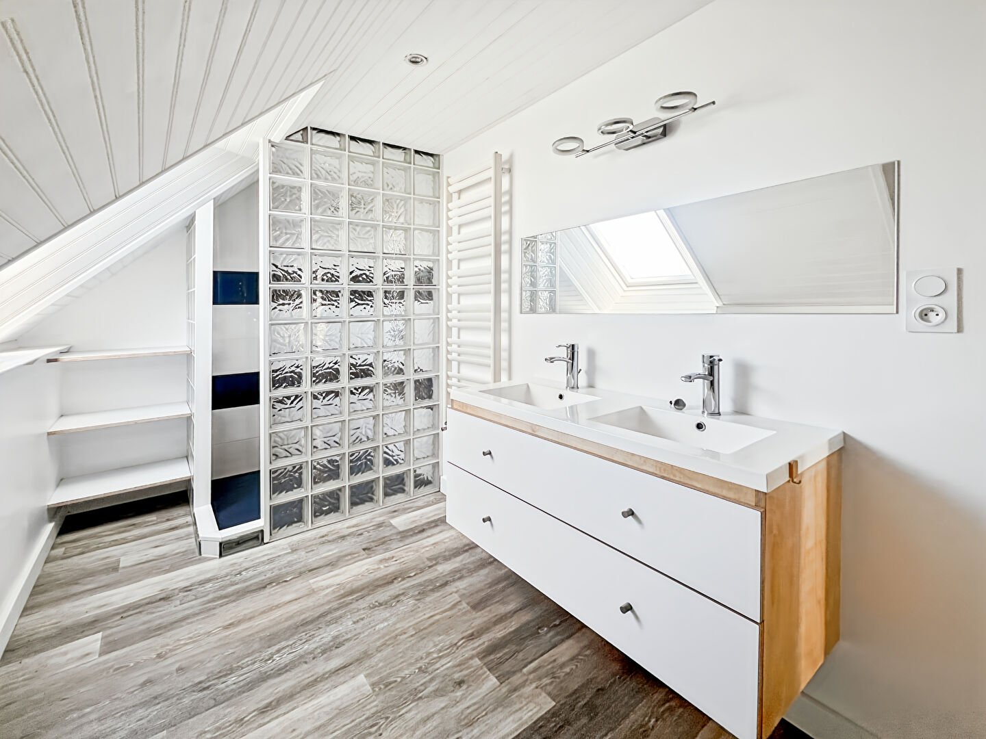 À l'étage, l'espace nuit se structure avec intelligence : quatre chambres, une salle d'eau avec WC, un dressing et un espace de rangement, pour que chaque enfant dispose de son univers et que chacun circule facilement au quotidien.