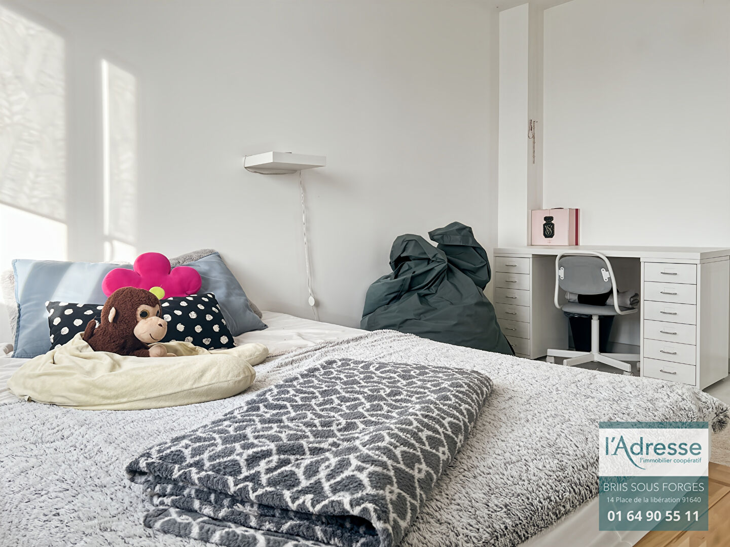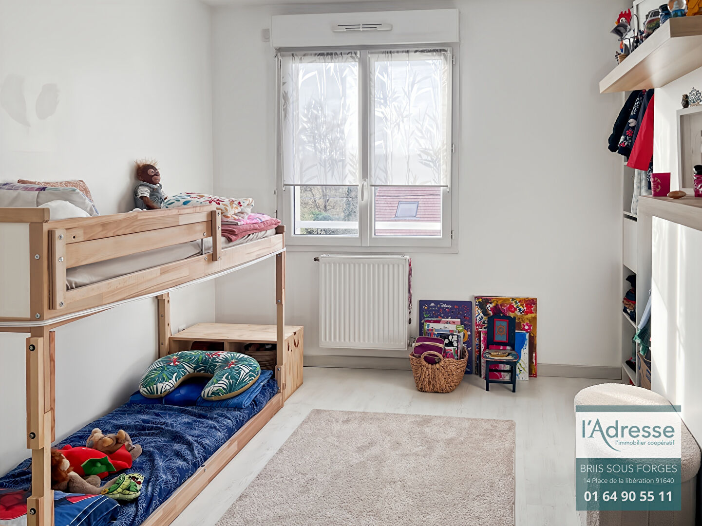 À l'étage, le palier dessert trois chambres confortables, un dressing commun et une salle de bains.