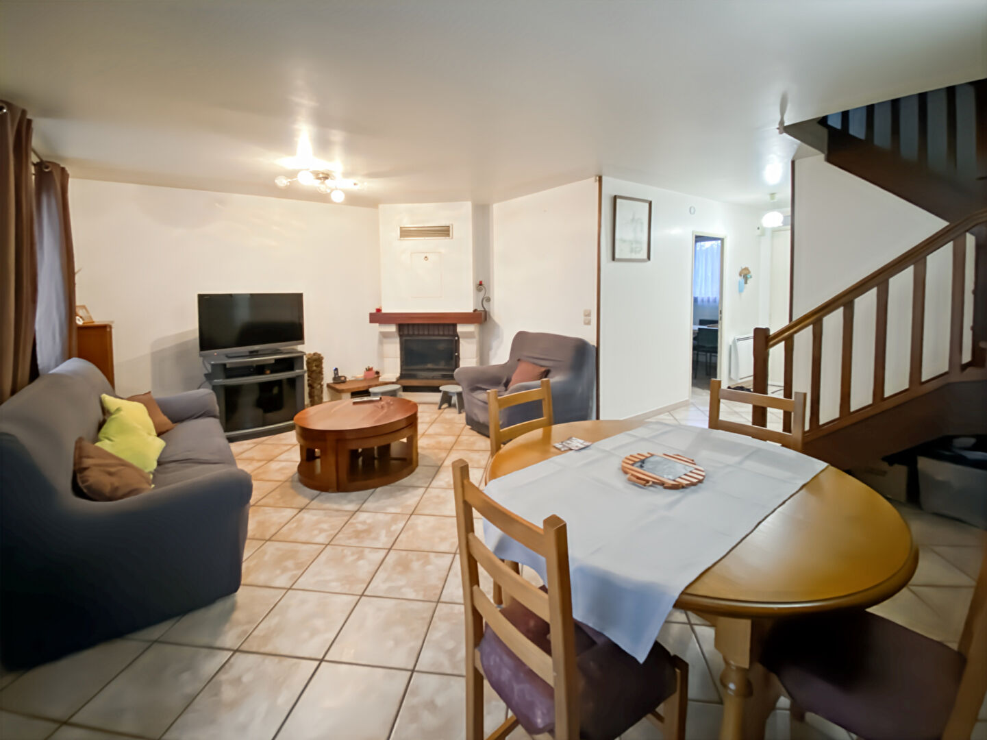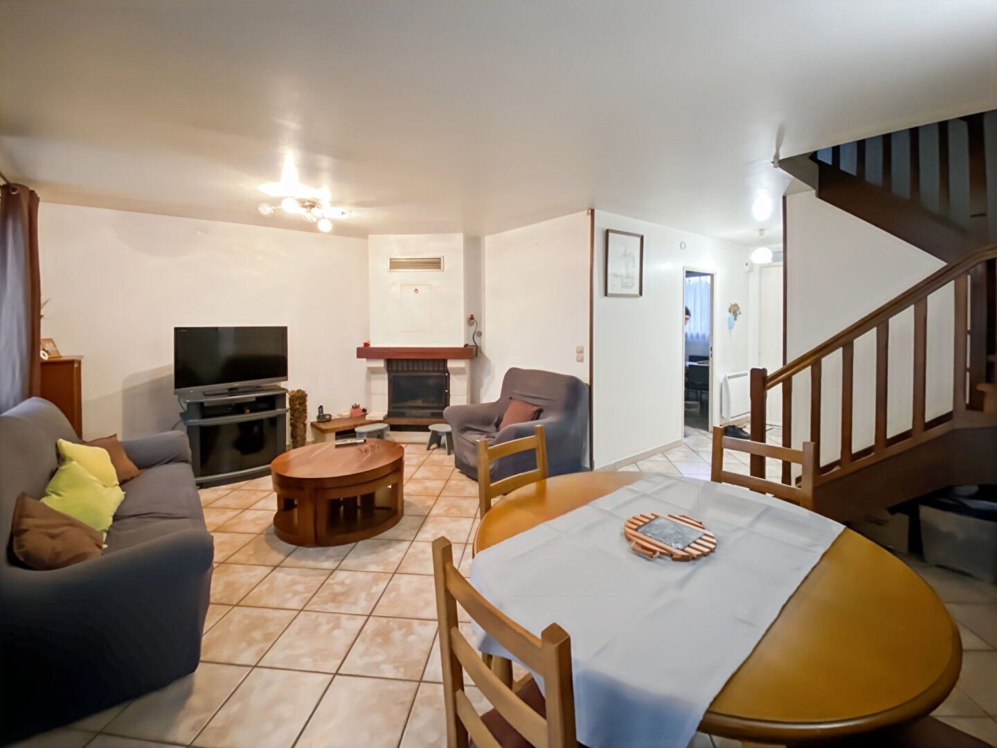 Séjour lumineux avec cheminée et insert