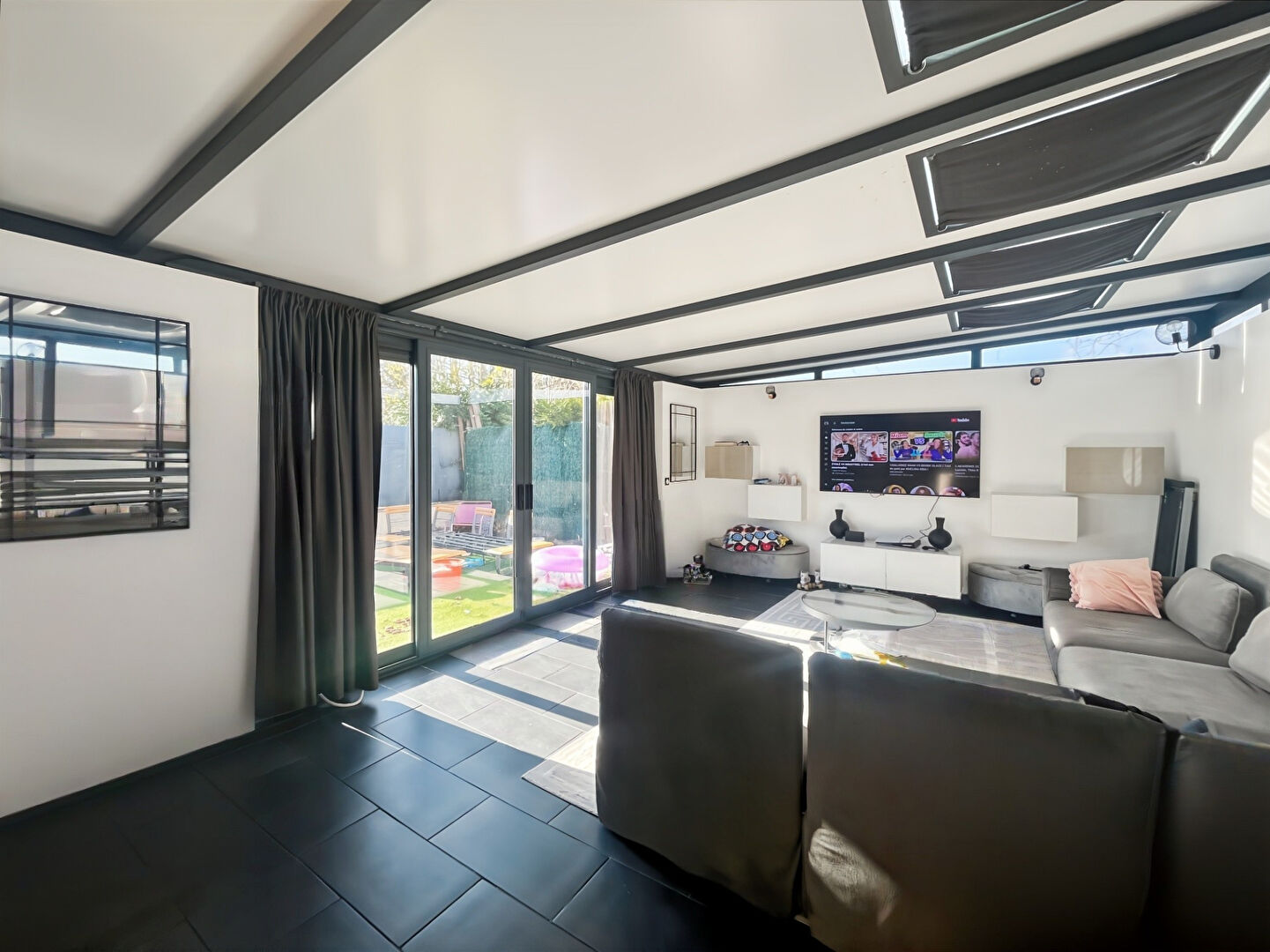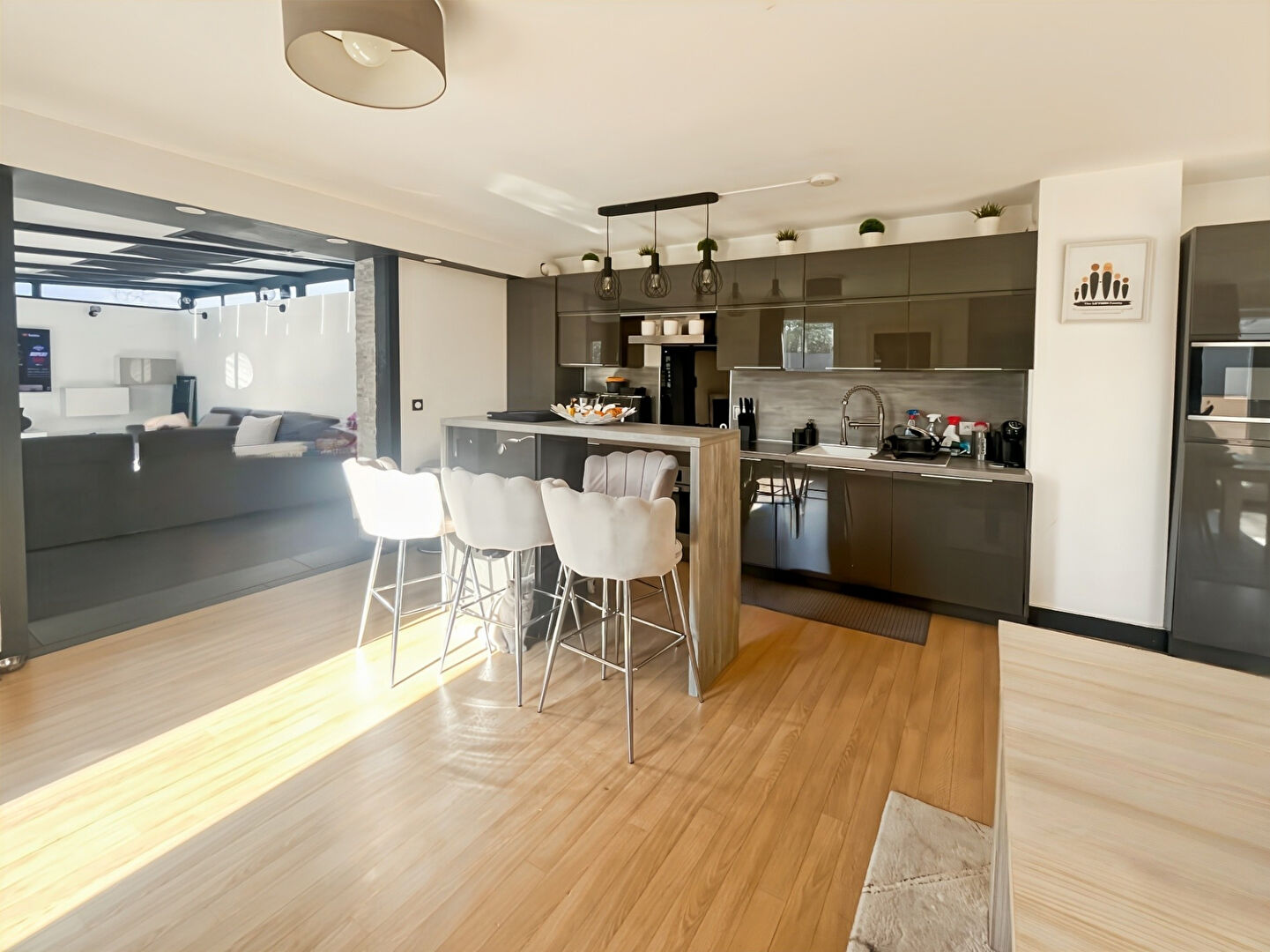 Dès l'entrée, vous découvrirez une superbe pièce de vie baignée de lumière, où salon et salle à manger s'articulent avec élégance autour d'une cuisine américaine contemporaine entièrement équipée. Cet espace convivial, pensé pour le quotidien comme pour recevoir, se prolonge naturellement vers une magnifique véranda d'environ 25 m², véritable prolongement de la maison, offrant une vue agréable sur le jardin.
