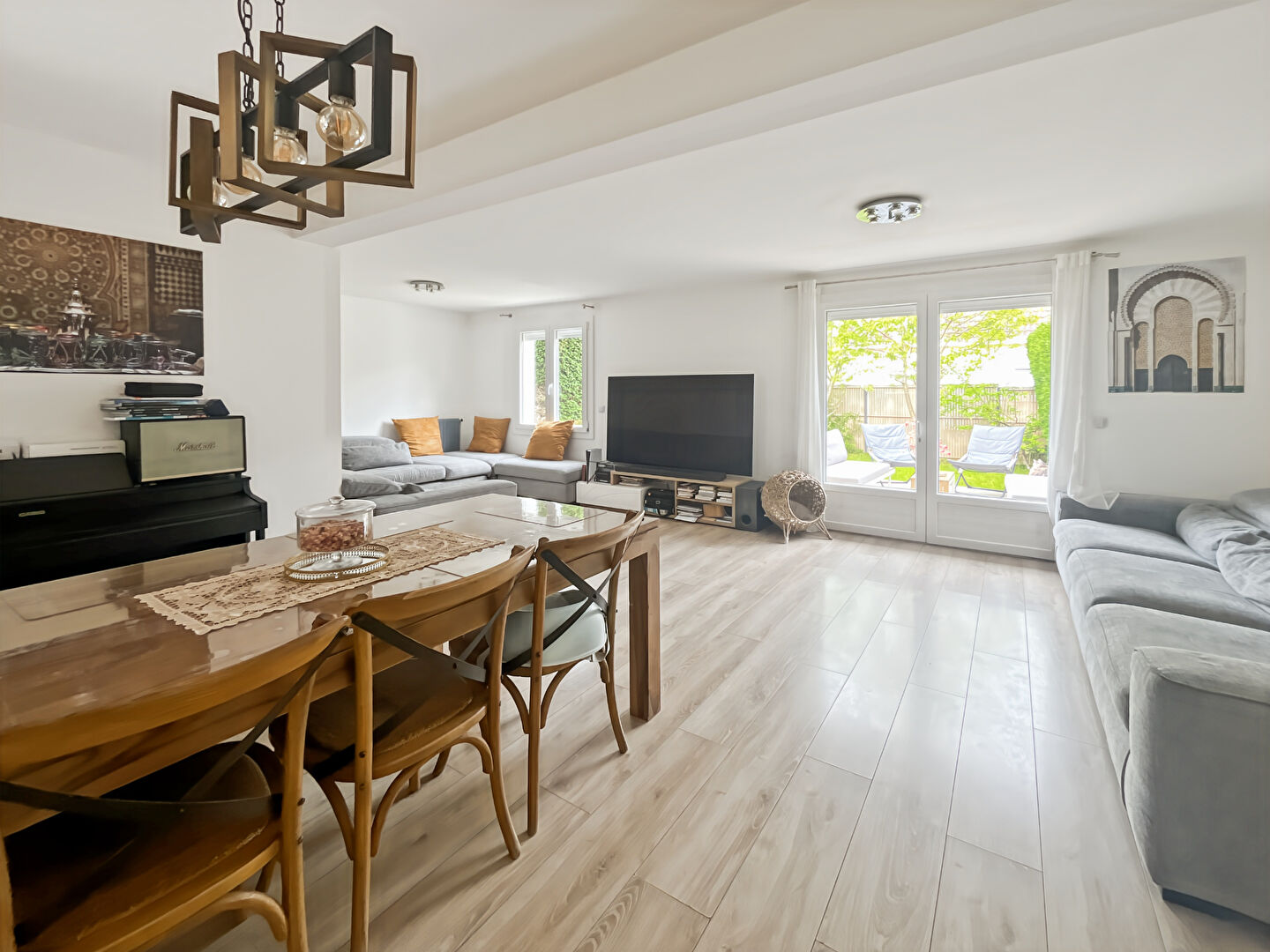 Elle offre un double séjour lumineux avec cuisine ouverte, offrant un bel espace de vie convivial et moderne prolongé par son jardin cocooning parfait pour vos moments de détente.