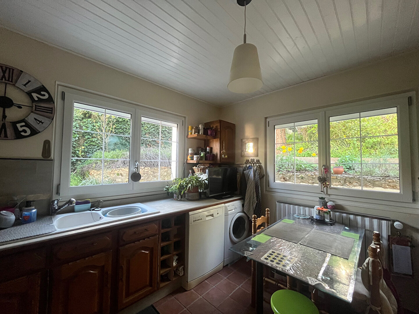 Jardin, 2 terrasses et grand garage.