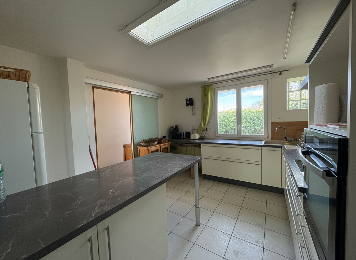 Elle se compose d'une cuisine indépendante, aménagée et équipée, ainsi que d'un spacieux et lumineux séjour, idéal pour partager des moments conviviaux. La maison offre 5 pièces au total, dont 3 belles chambres exposées au sud, parfaites pour accueillir une famille.